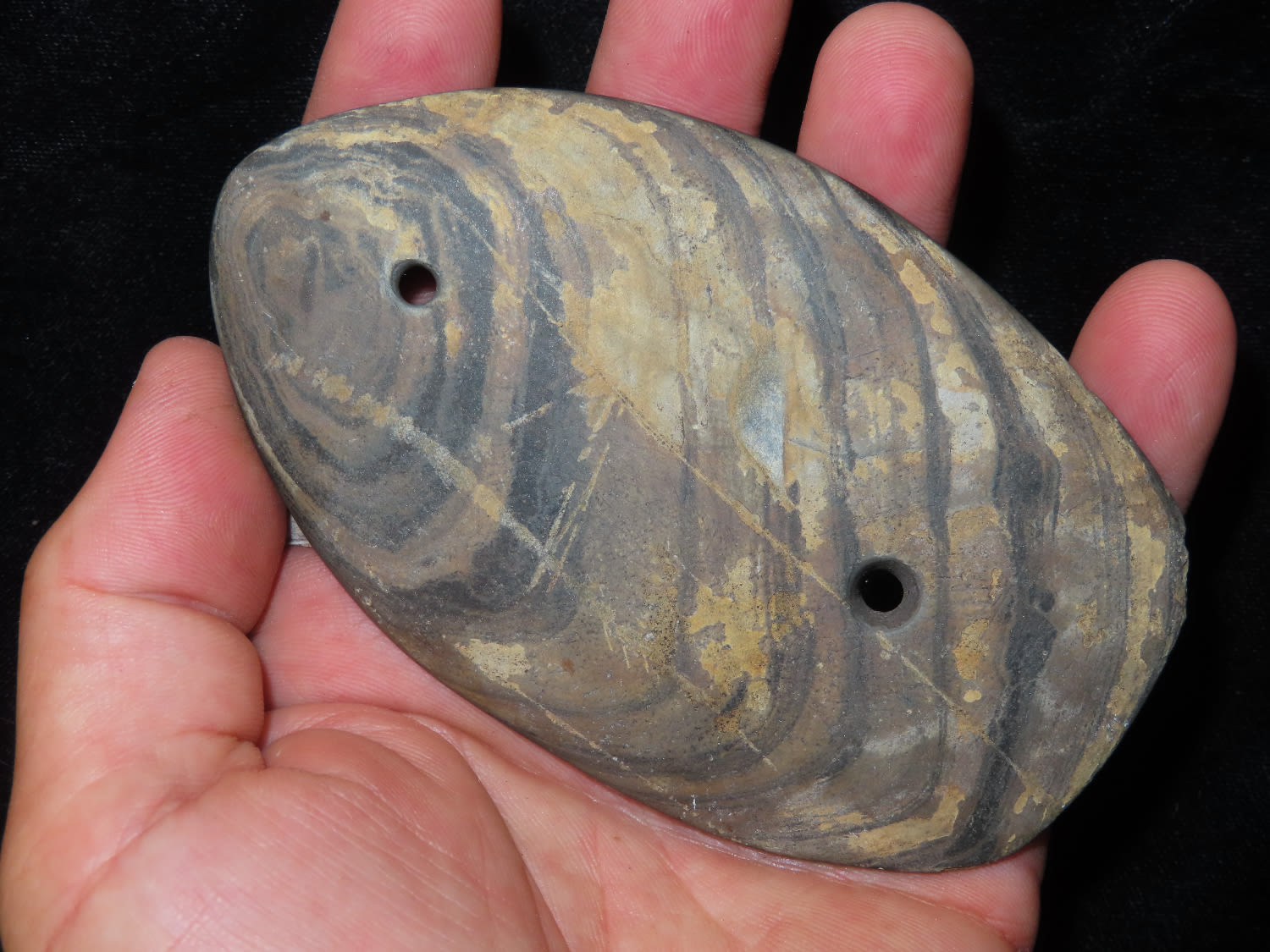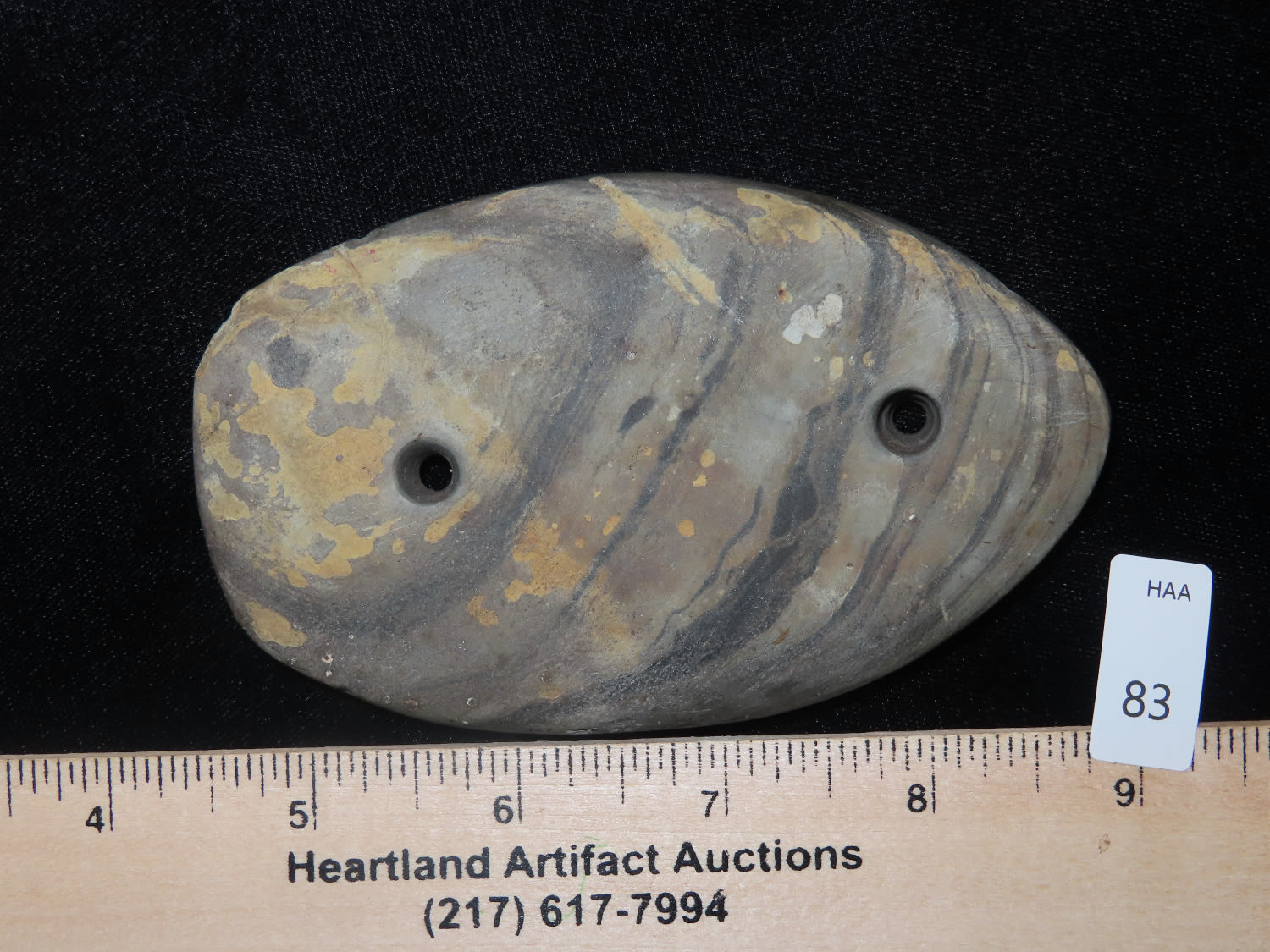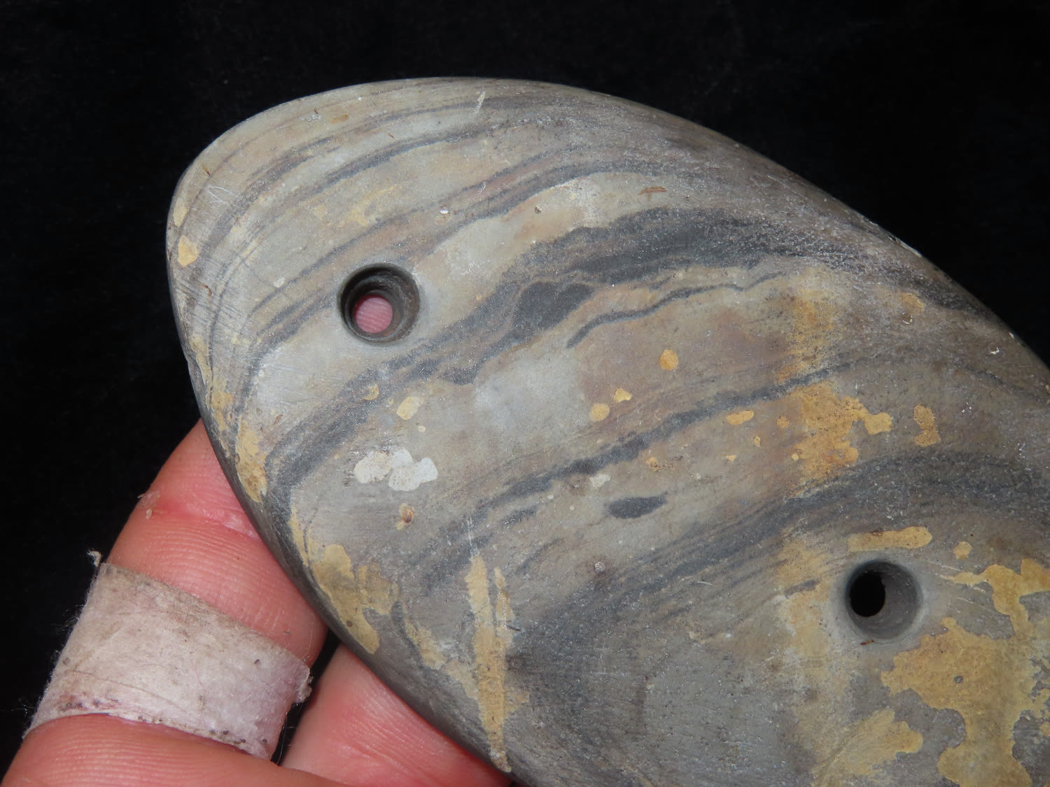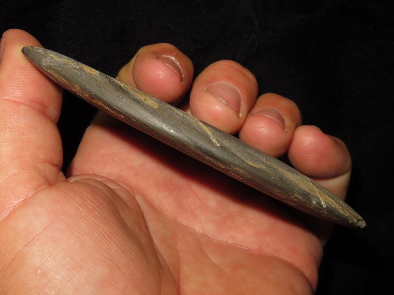 4 7/16″ Slate Gorget, found by Jim and Burley Fritz, Pulaski Co, Indiana