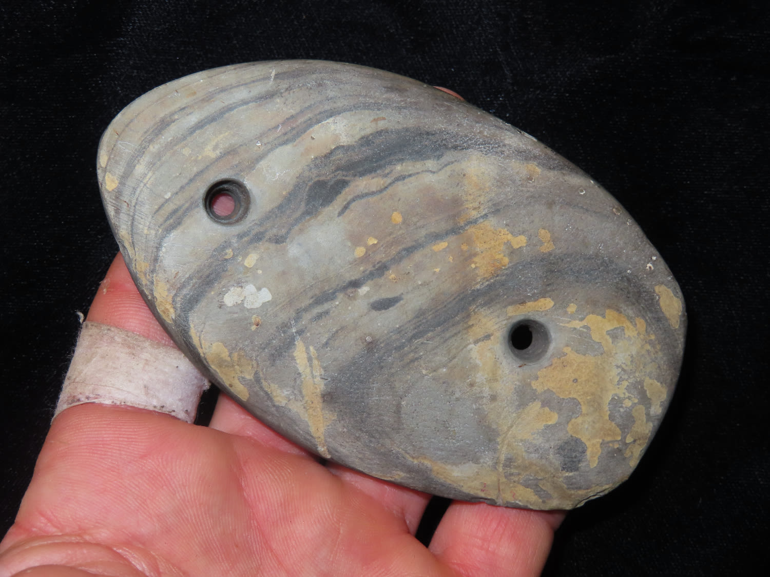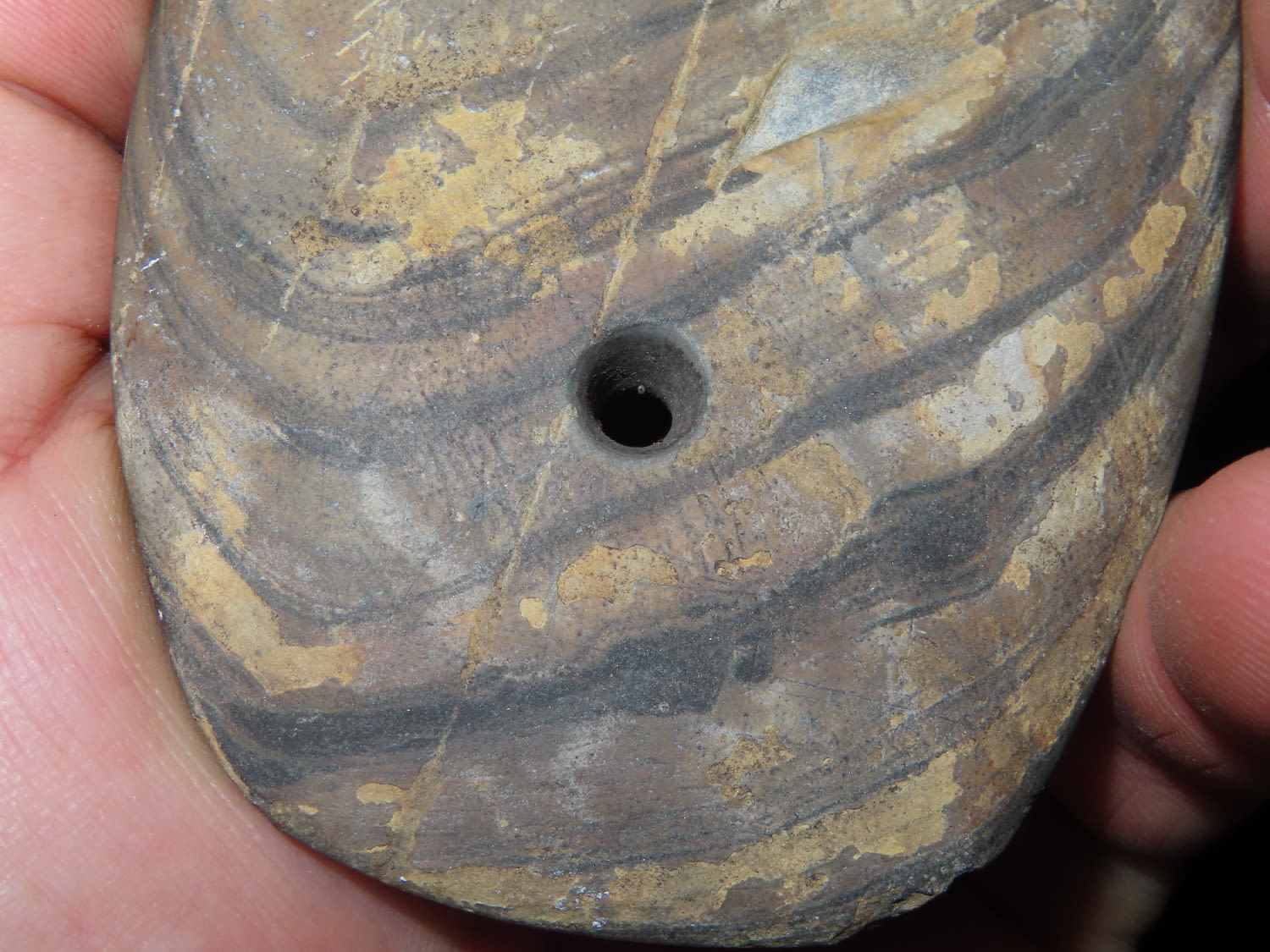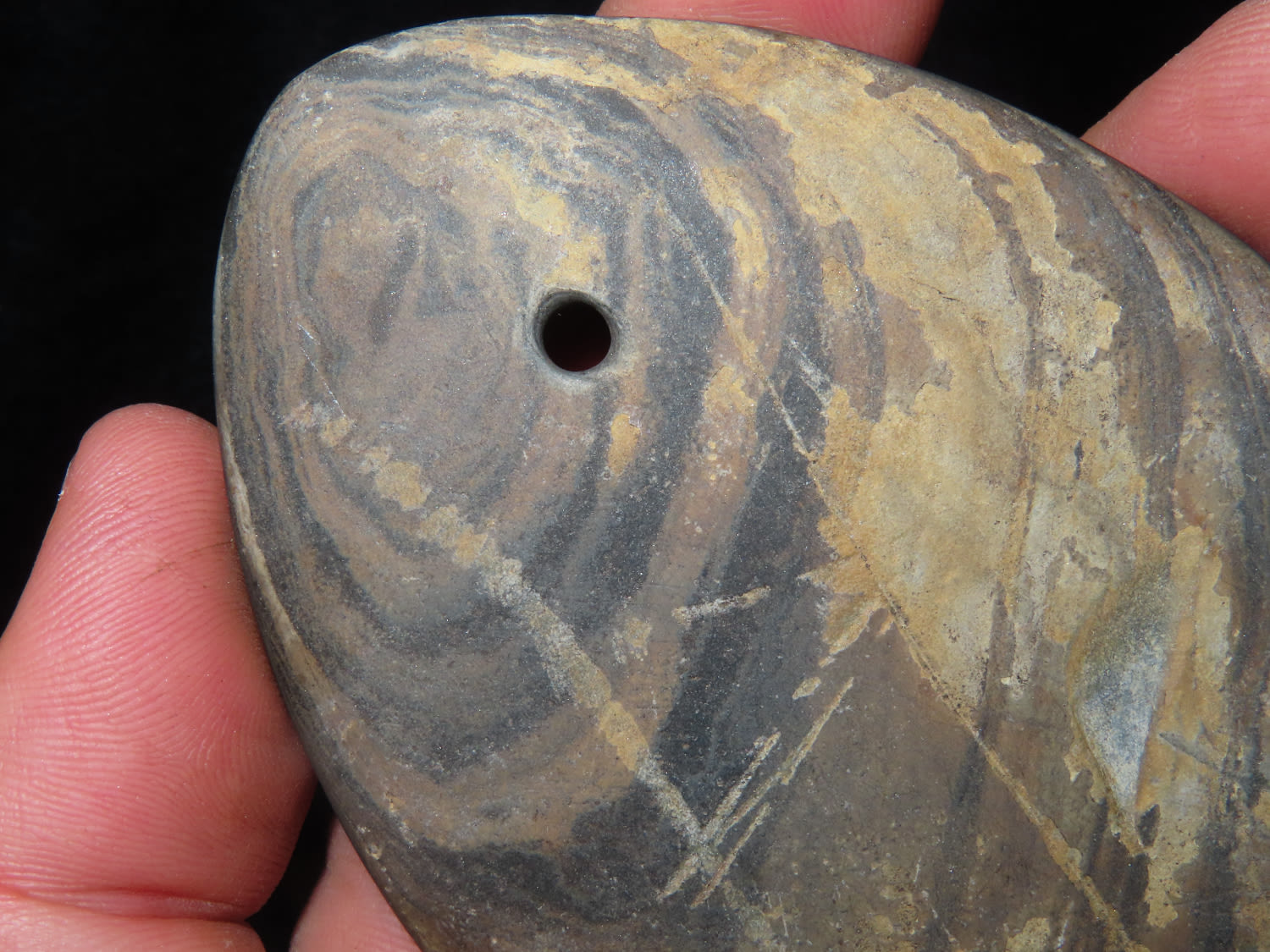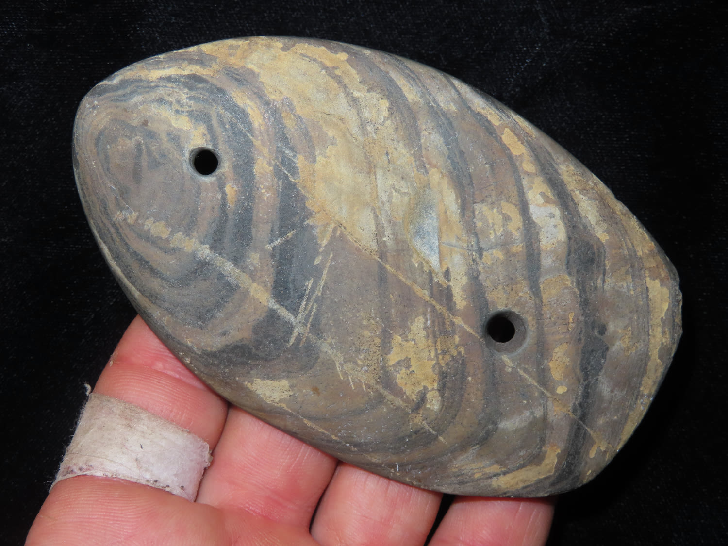 4 7/16″ Slate Gorget, found by Jim and Burley Fritz, Pulaski Co, Indiana