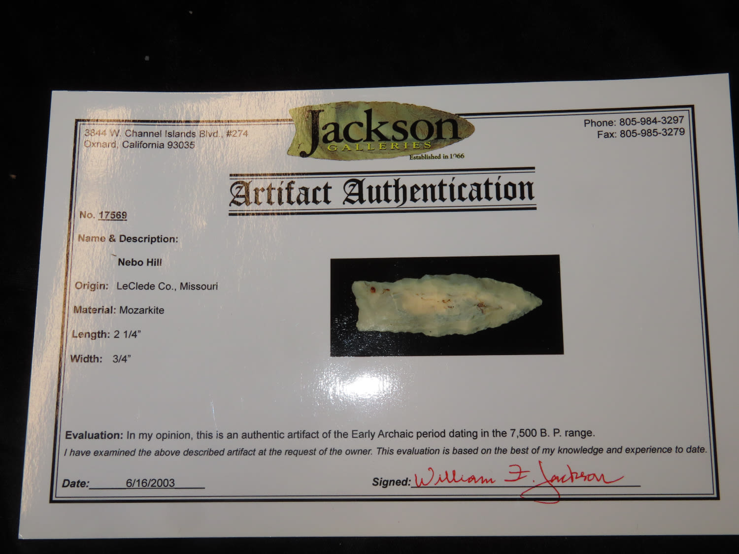 2 1/4" Nebo Hill, Jackson COA, LeClede Co MO