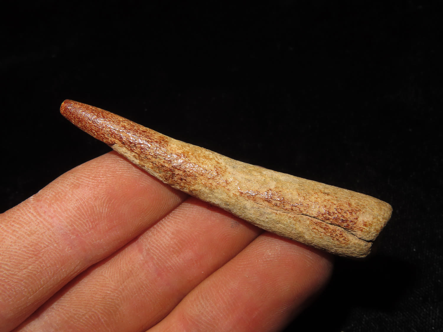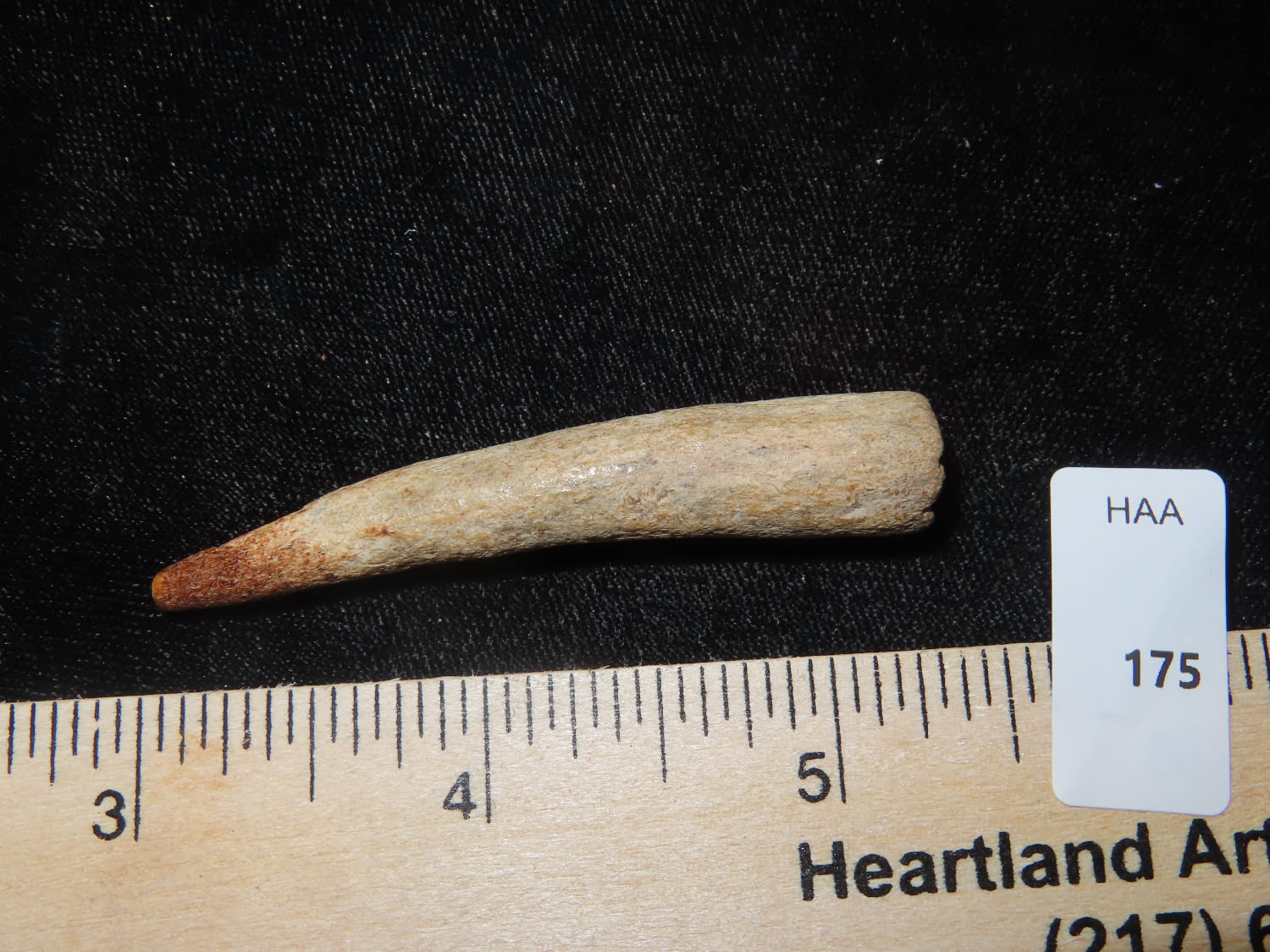 2 3/8″ Bone Arrowhead, Indented base, Central Illinois. Illinois River Find