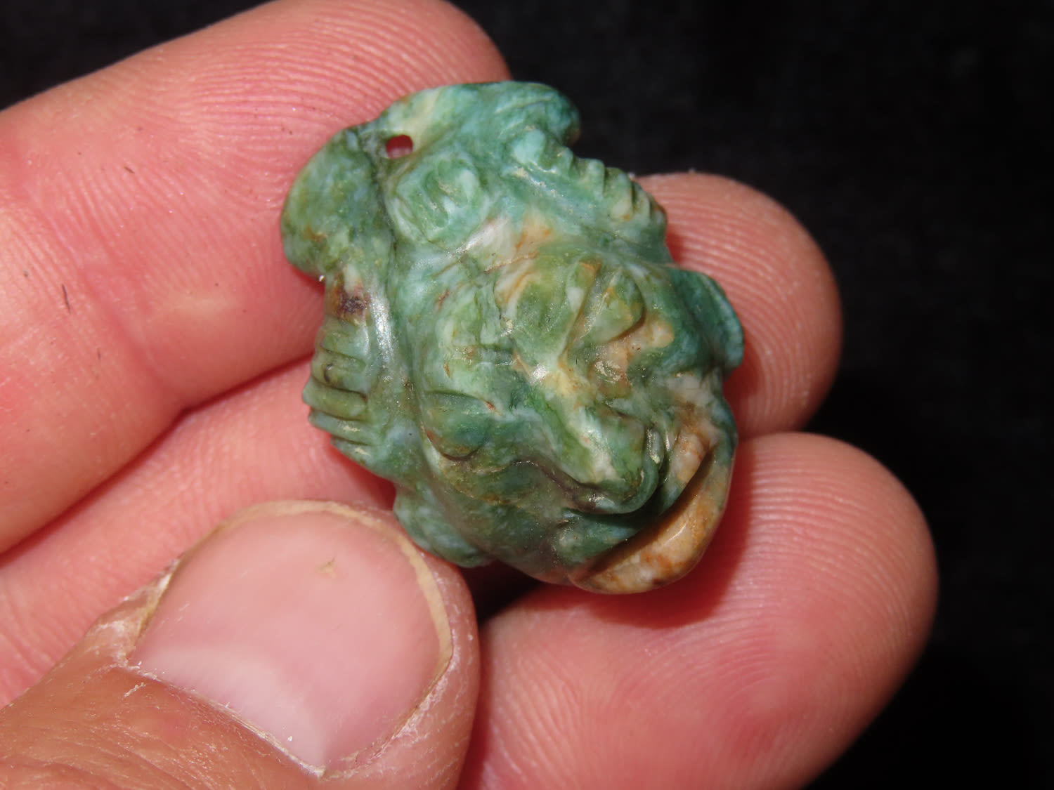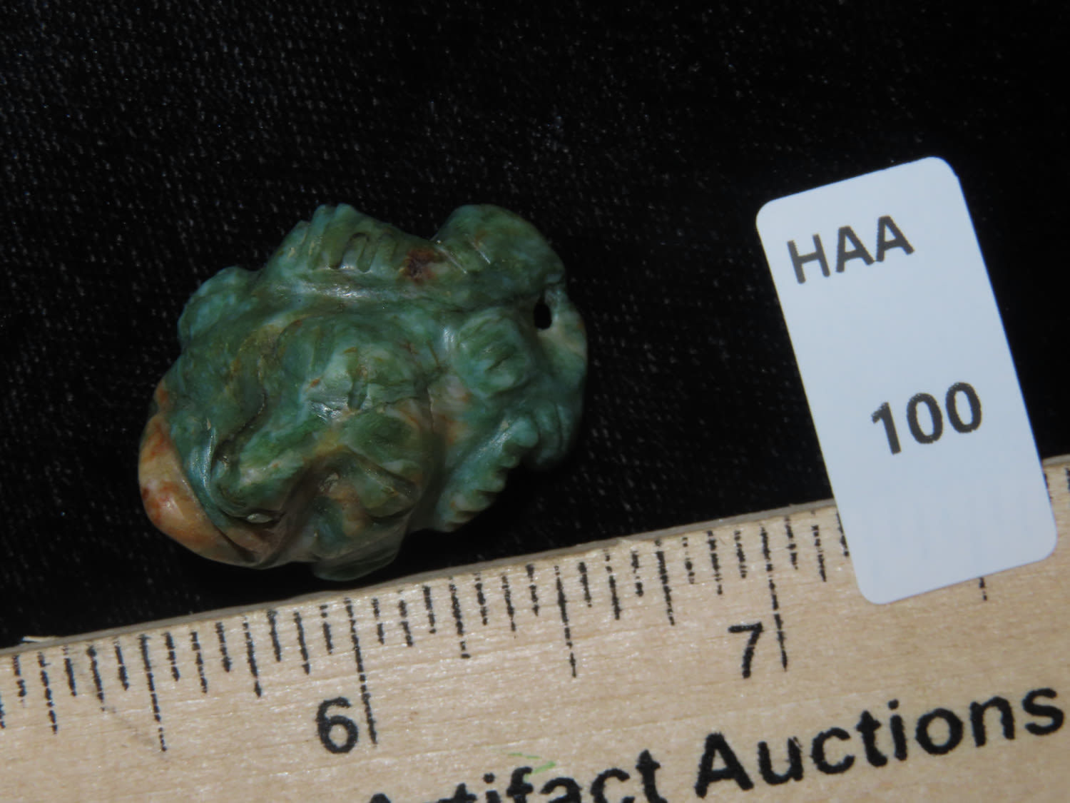 1″ Pre Columbian Jade Bead Effigy, Southern Mexico