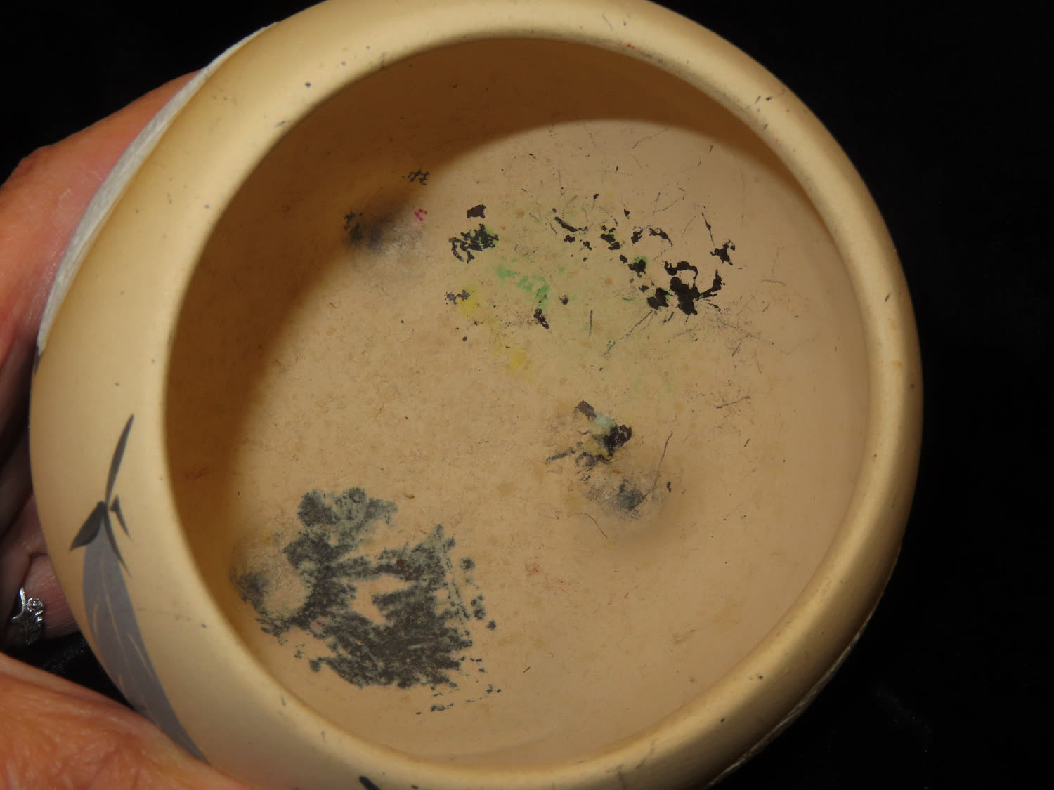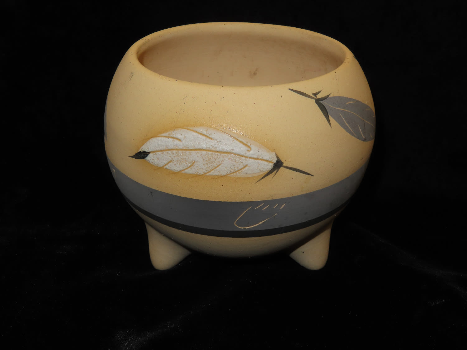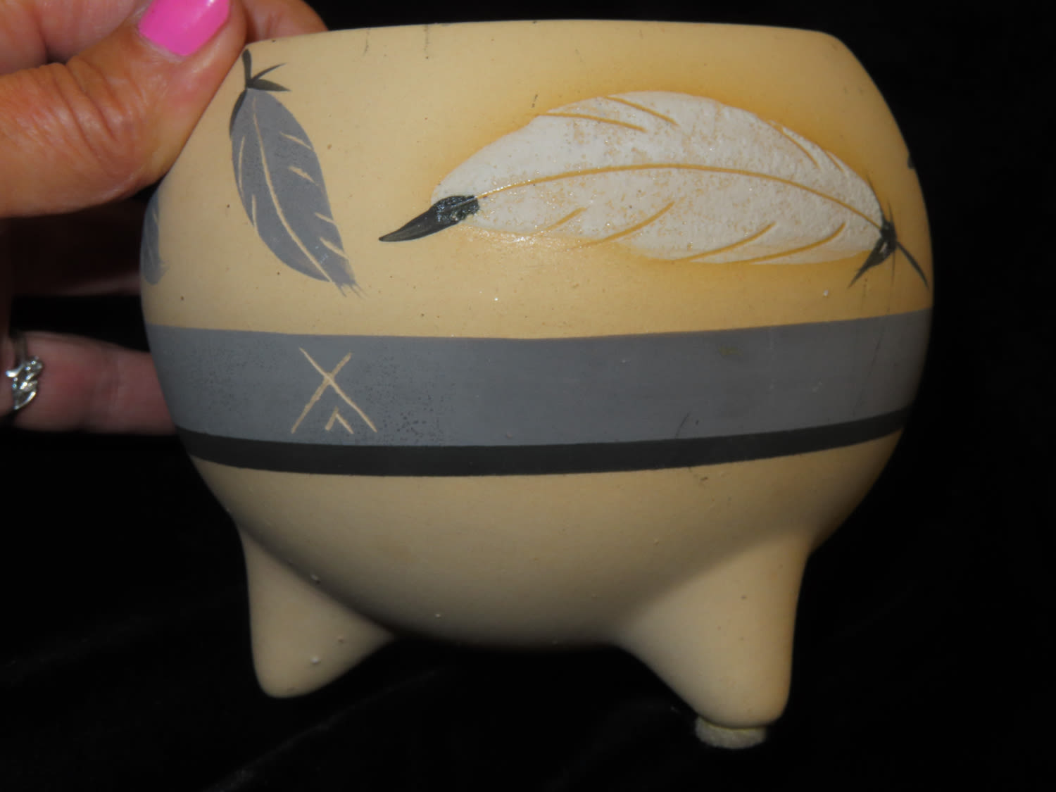 4″ Western Ceramic Bowl Depicting Feathers Signed