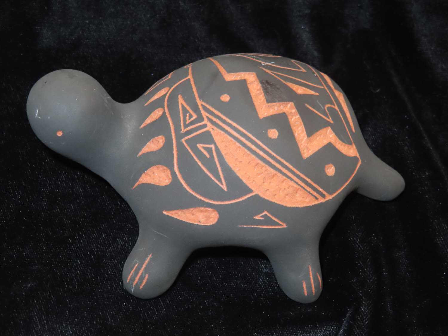 4 3/4″ Acoma Turtle Effigy Figurine 1900s Signed