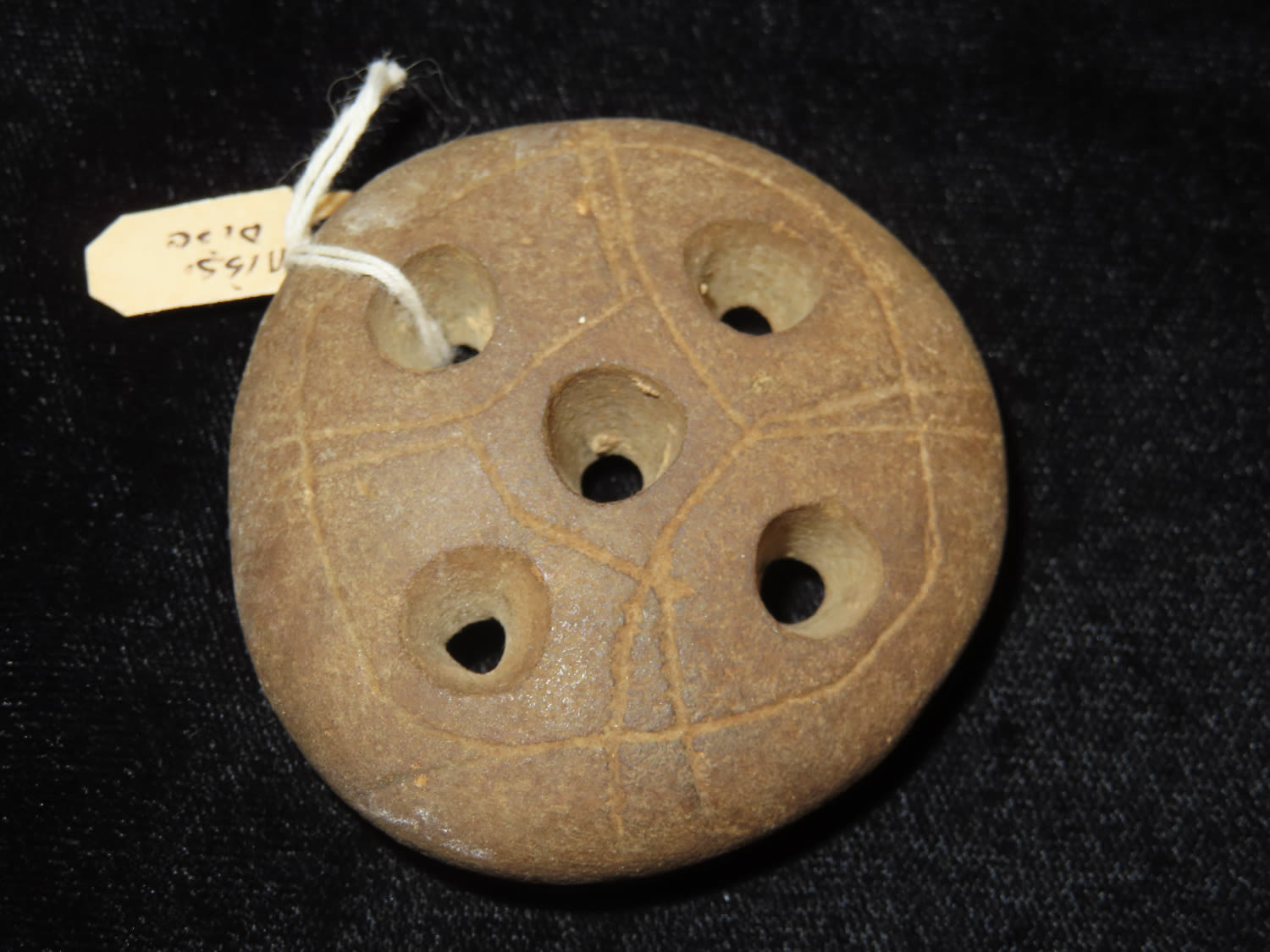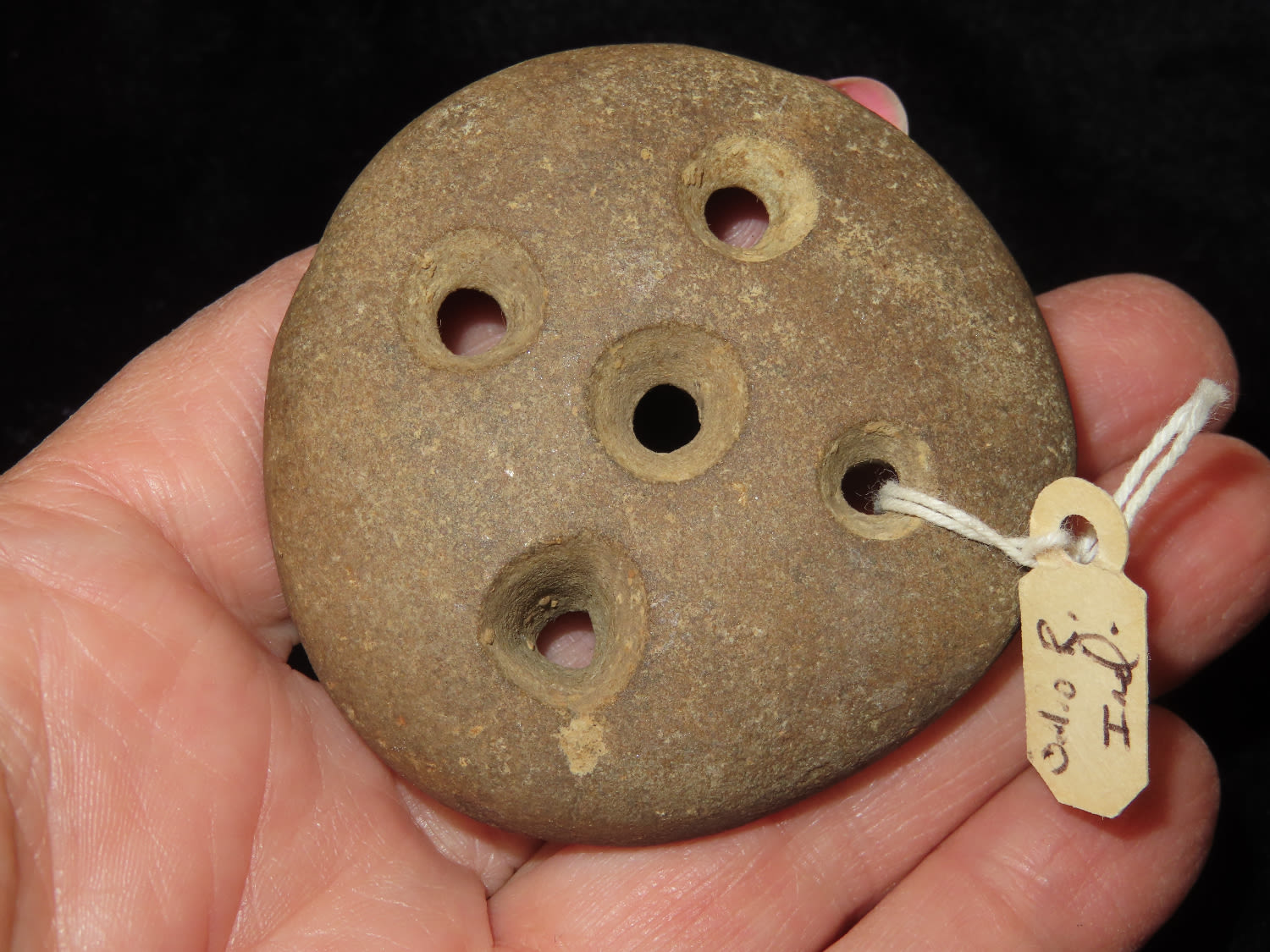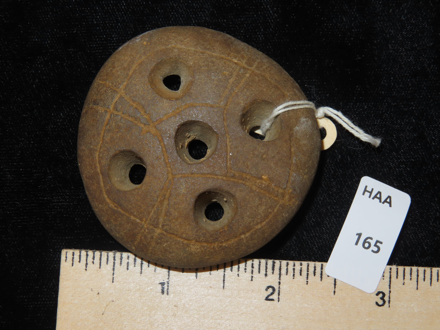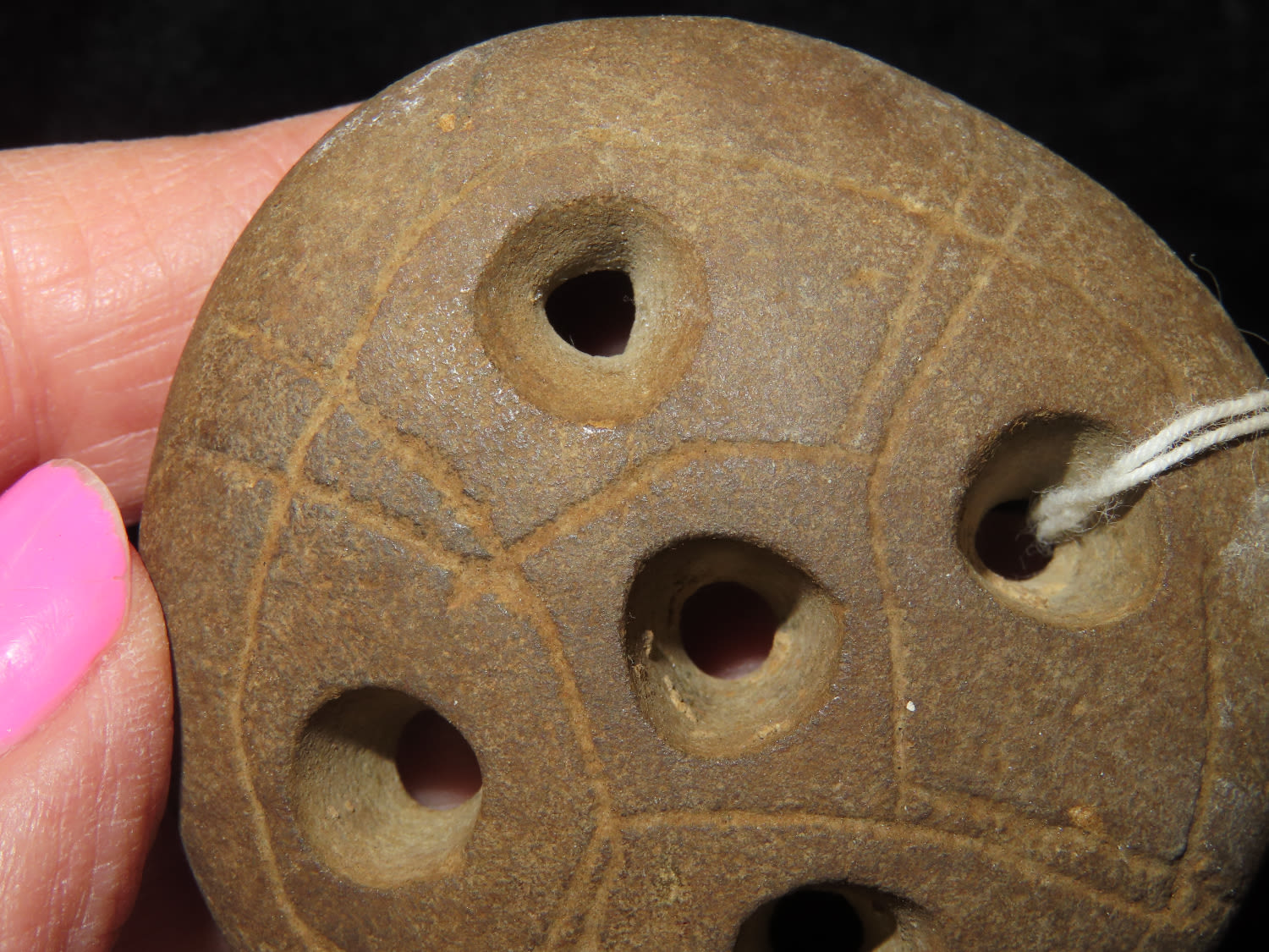 Super Rare Drilled and Engraved Effigy Disc / Pendant, Ohio River in Indiana, Ex John Grotte