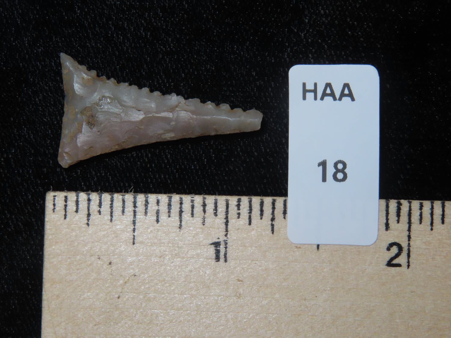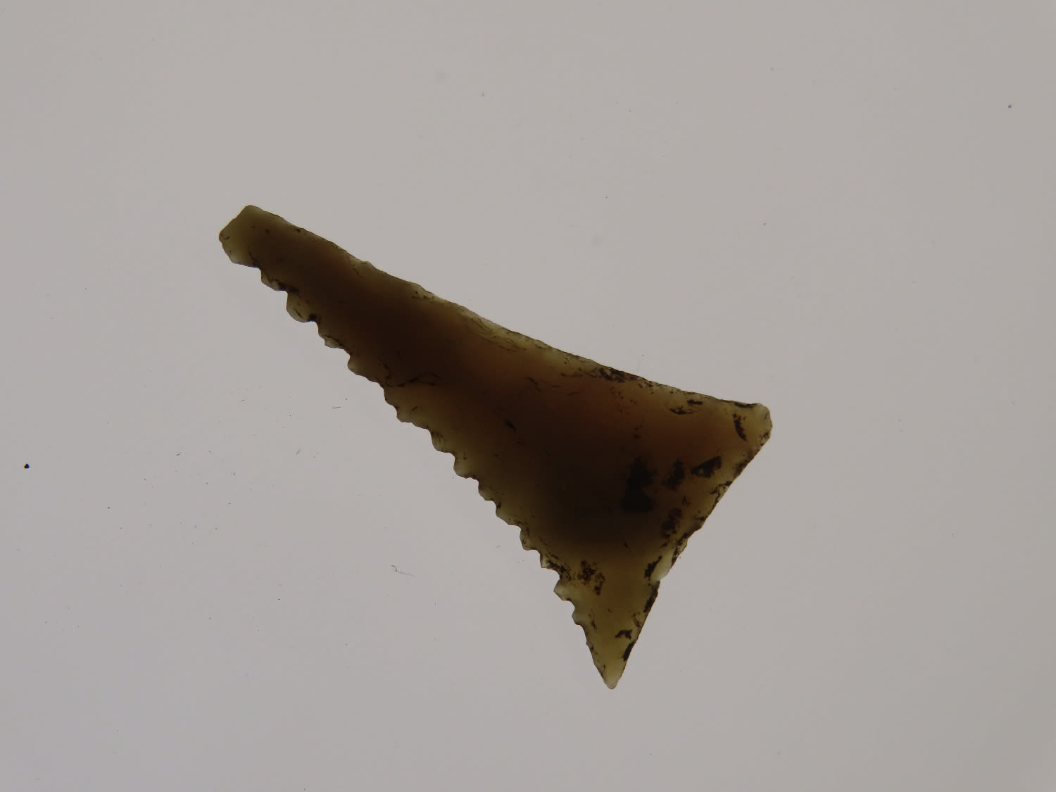 1 1/8" Wild 1/2 Serrated Madison Cahokia Triangle, Nicely Colored, Greene Co Illinois