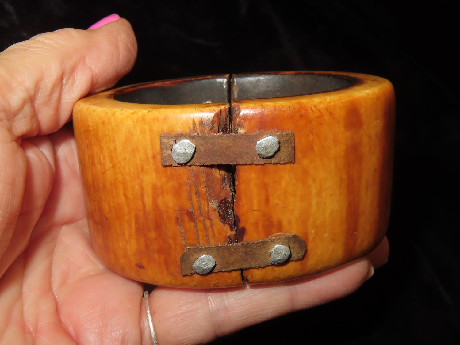 3 1/8″ Bone and Leather Cuff, Africa