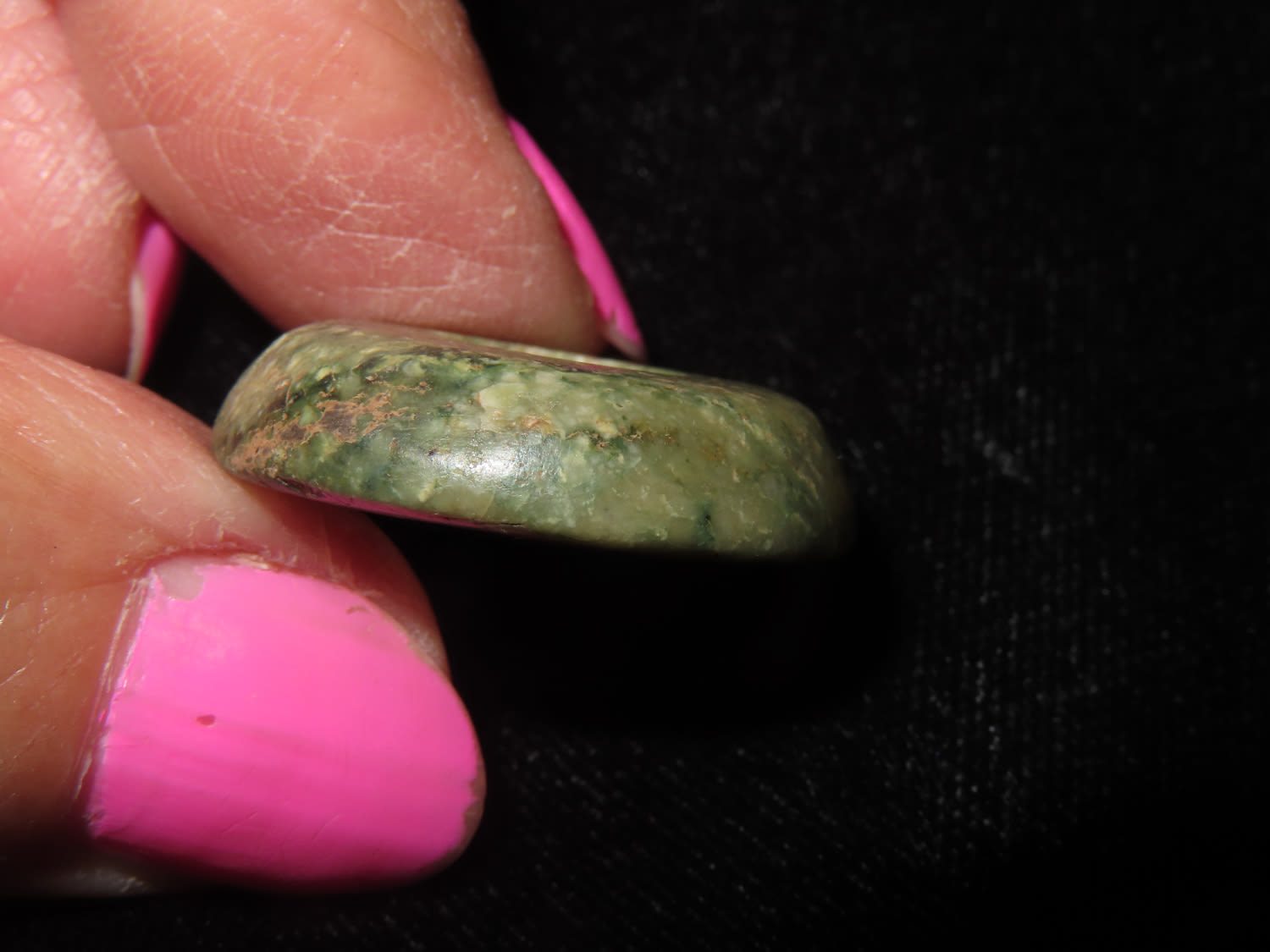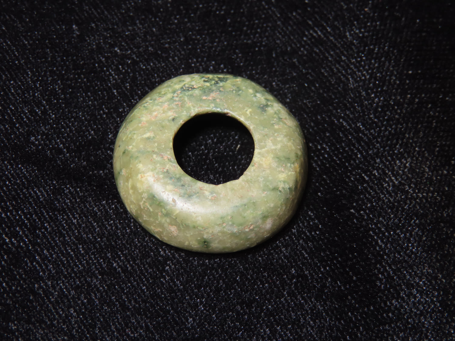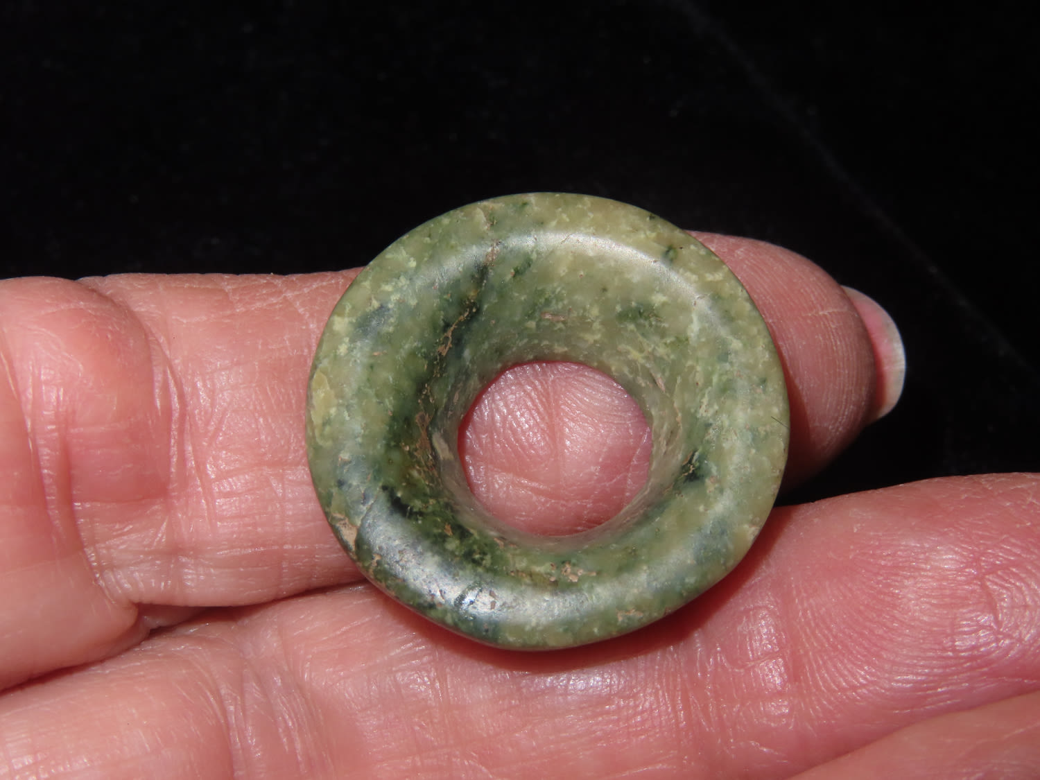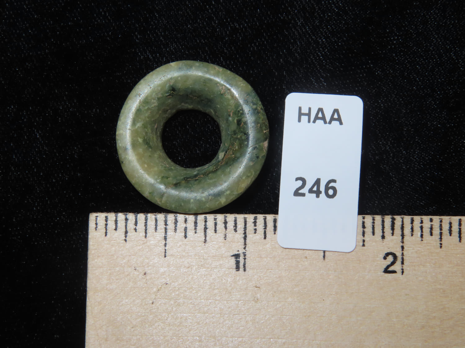 1″ Dia Jade Ear Spool, Pre Columbian / Mayan, Ex David Harner, Guatemala, Ex Chris Leandro