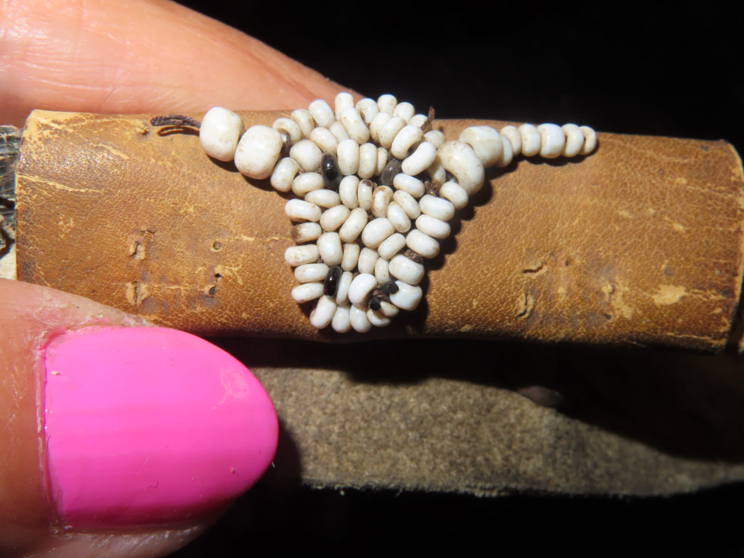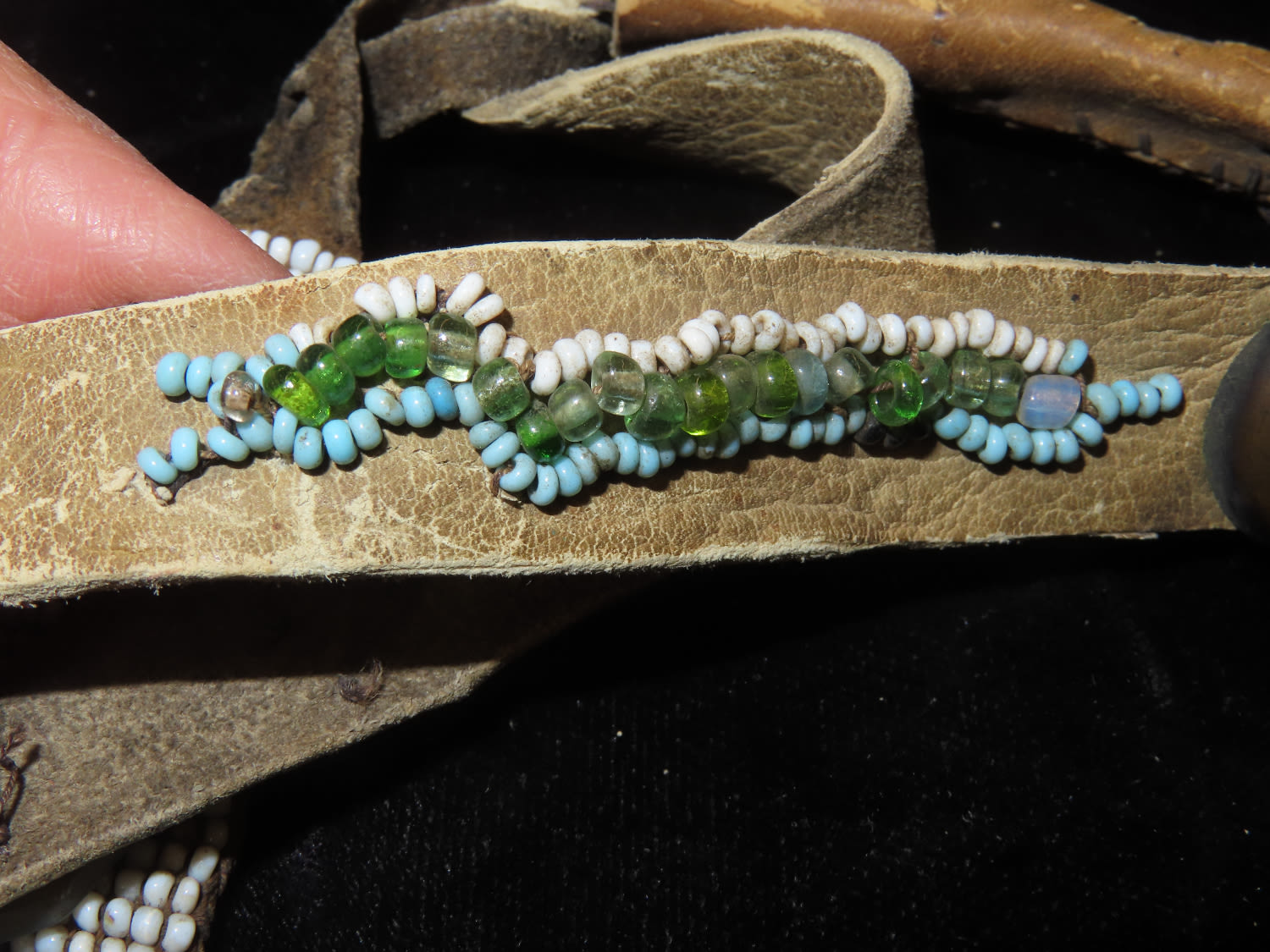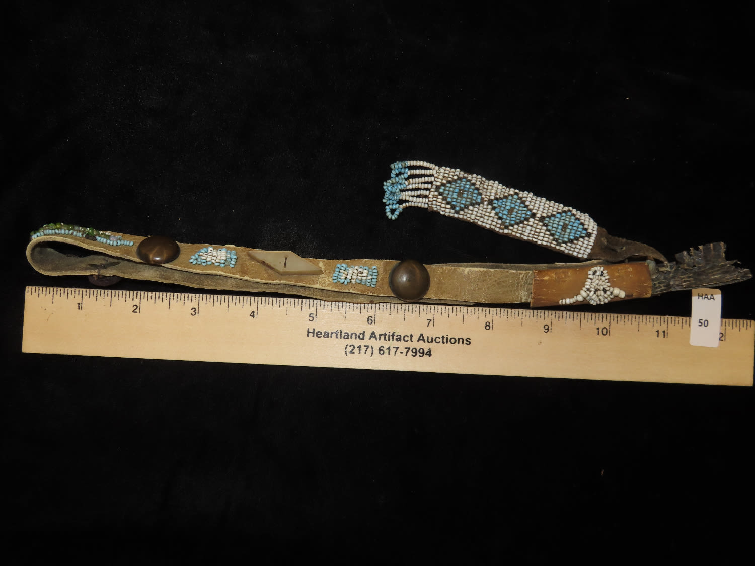 Highly Decorated Vintage Native American Quirt featuring Intricate Beadwork, Snakeskin, Carved Stone, and Metal Adornments
