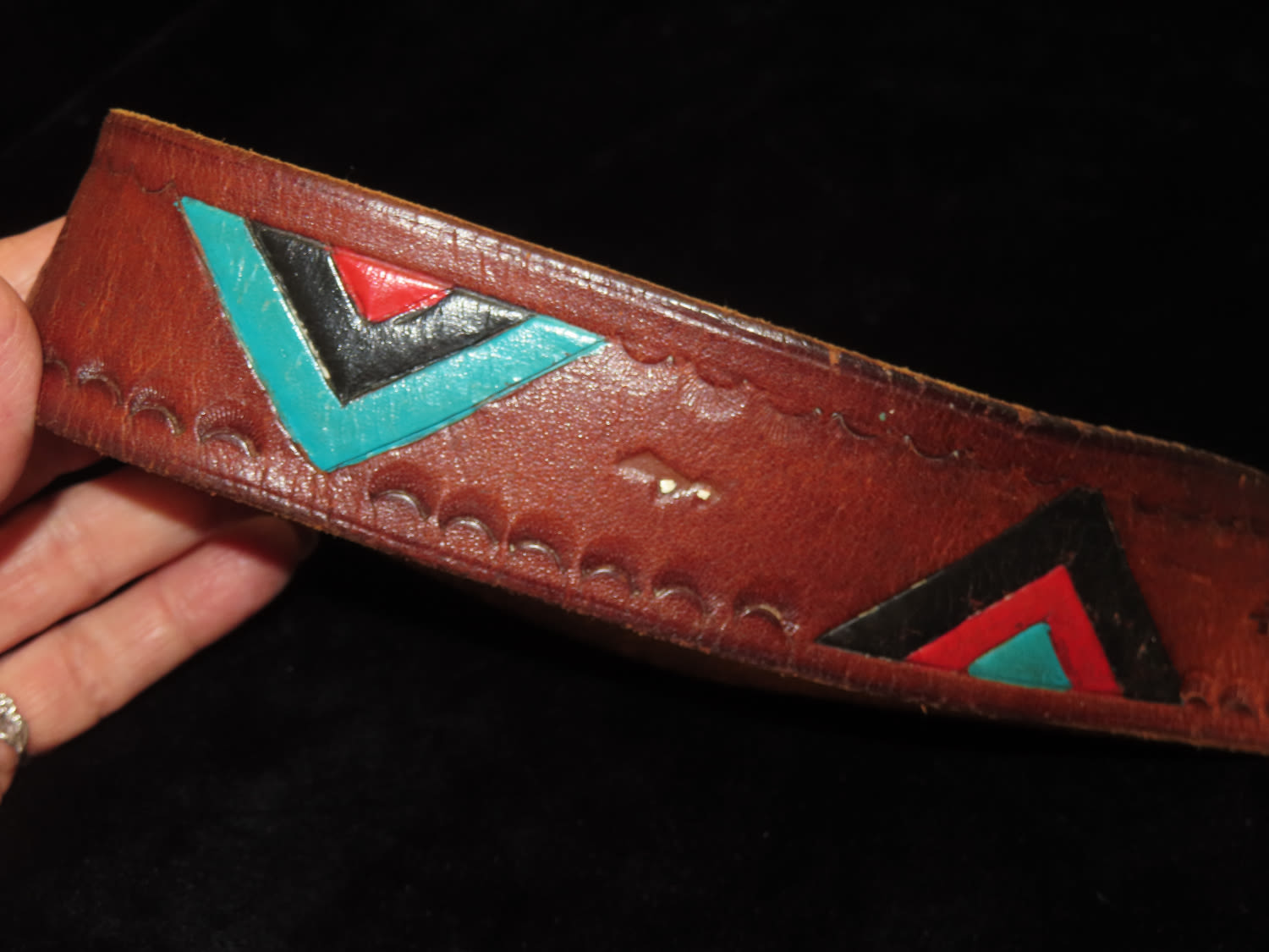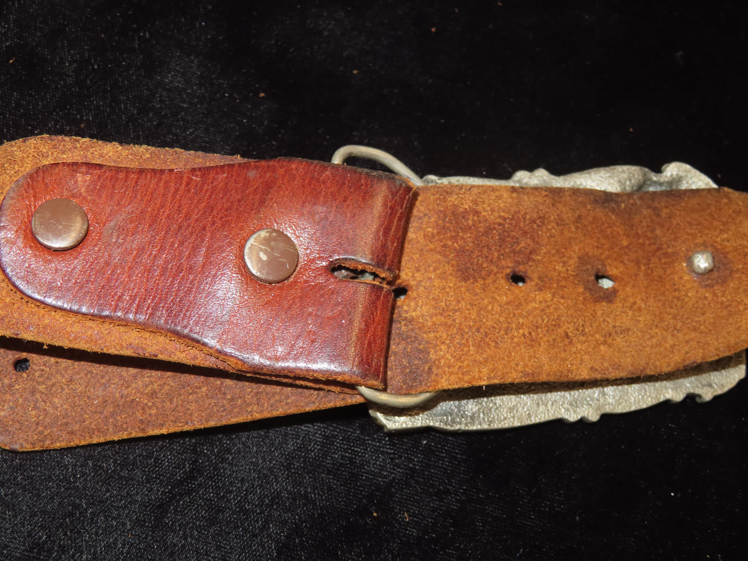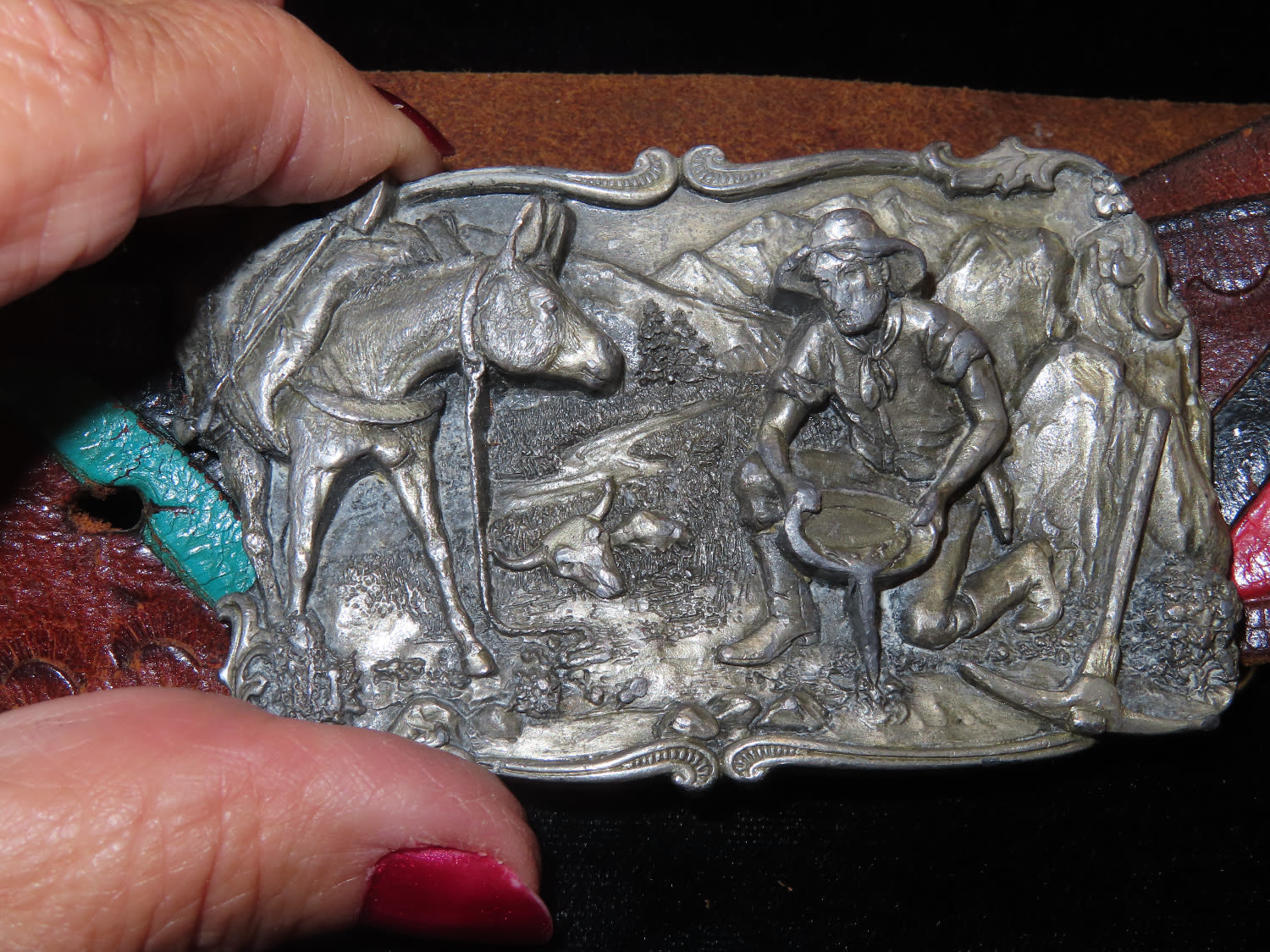 Native American Style Leather Belt with Gold Miner Belt Buckle by Arroyo Grande Buckle Co 1981