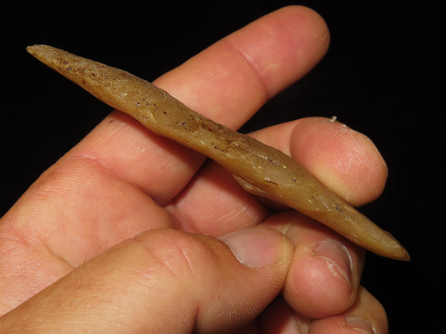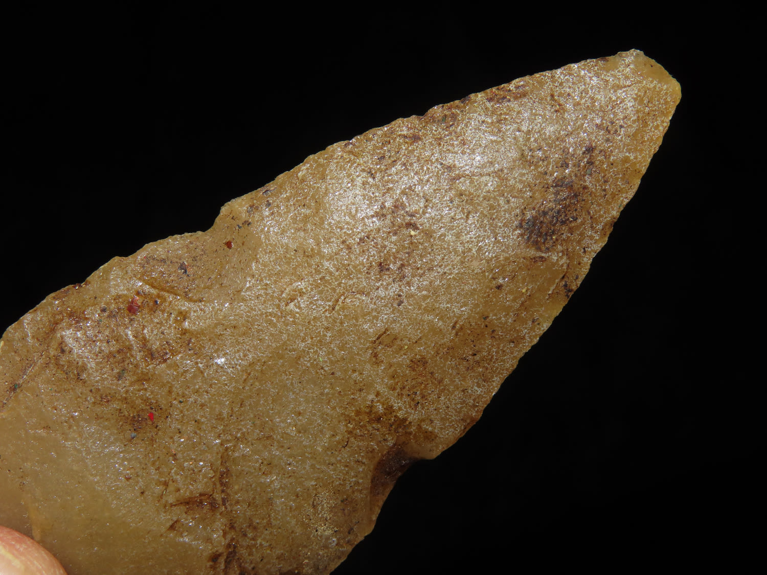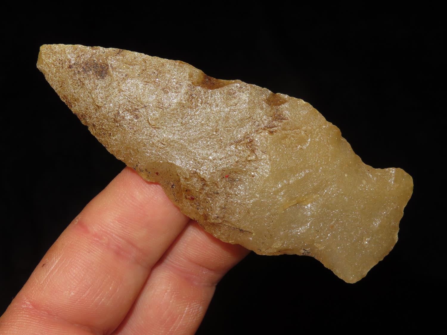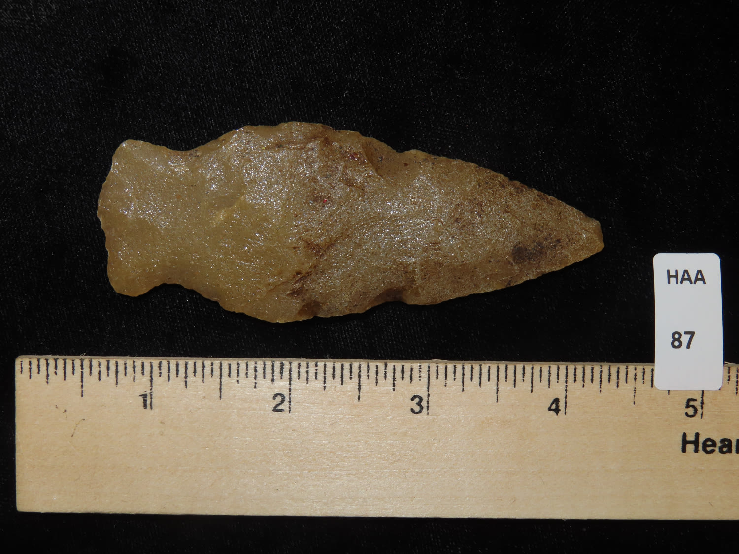 3 11/16″ Archaic Beveled Hixton Quartz Side Notch Ex Robert Hruska, Wisconsin