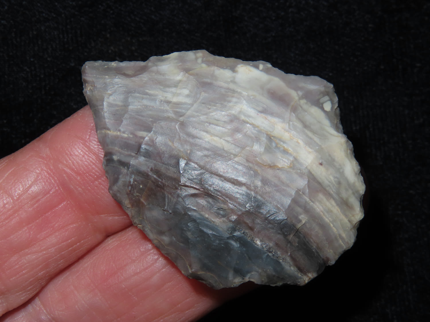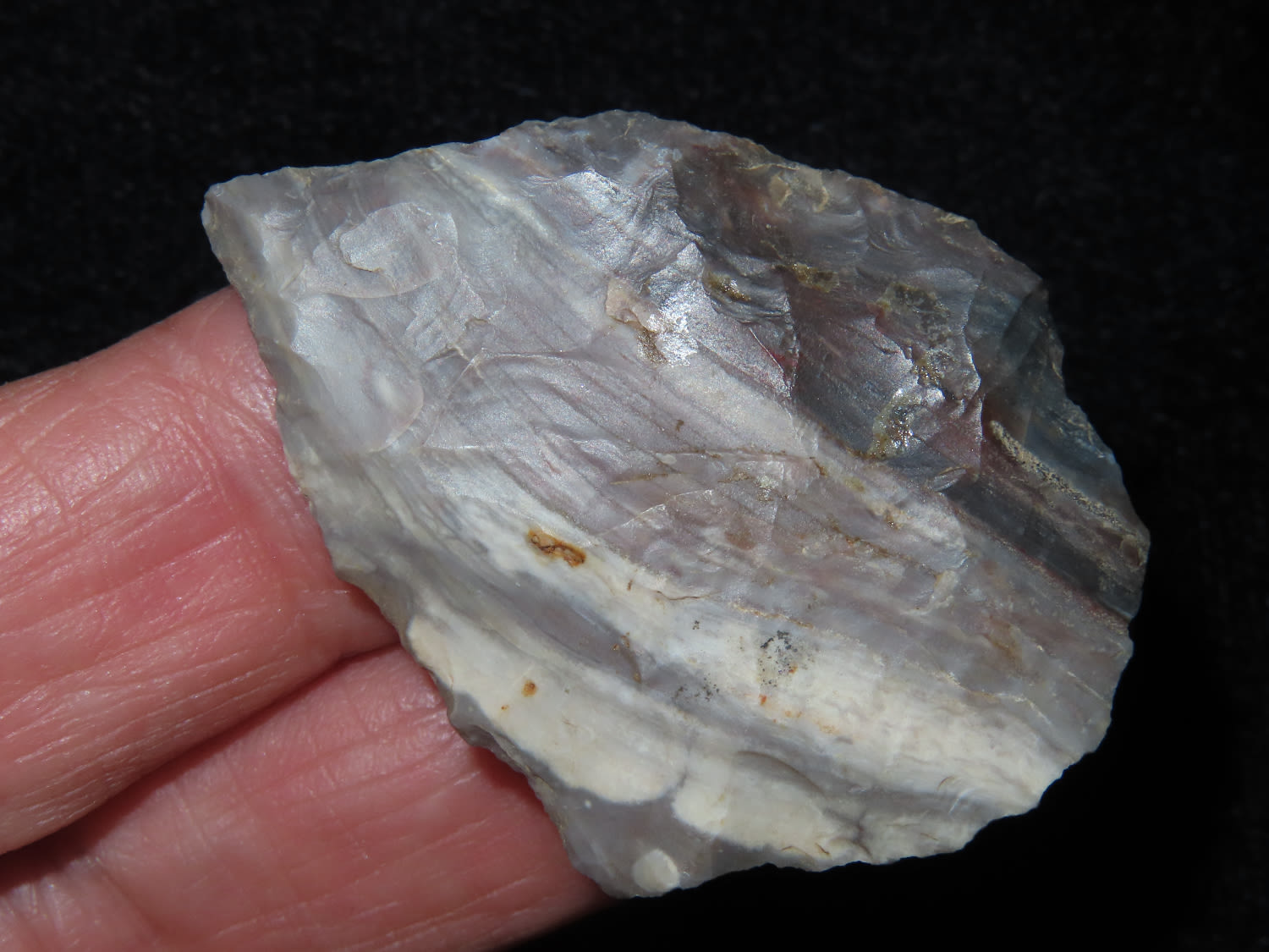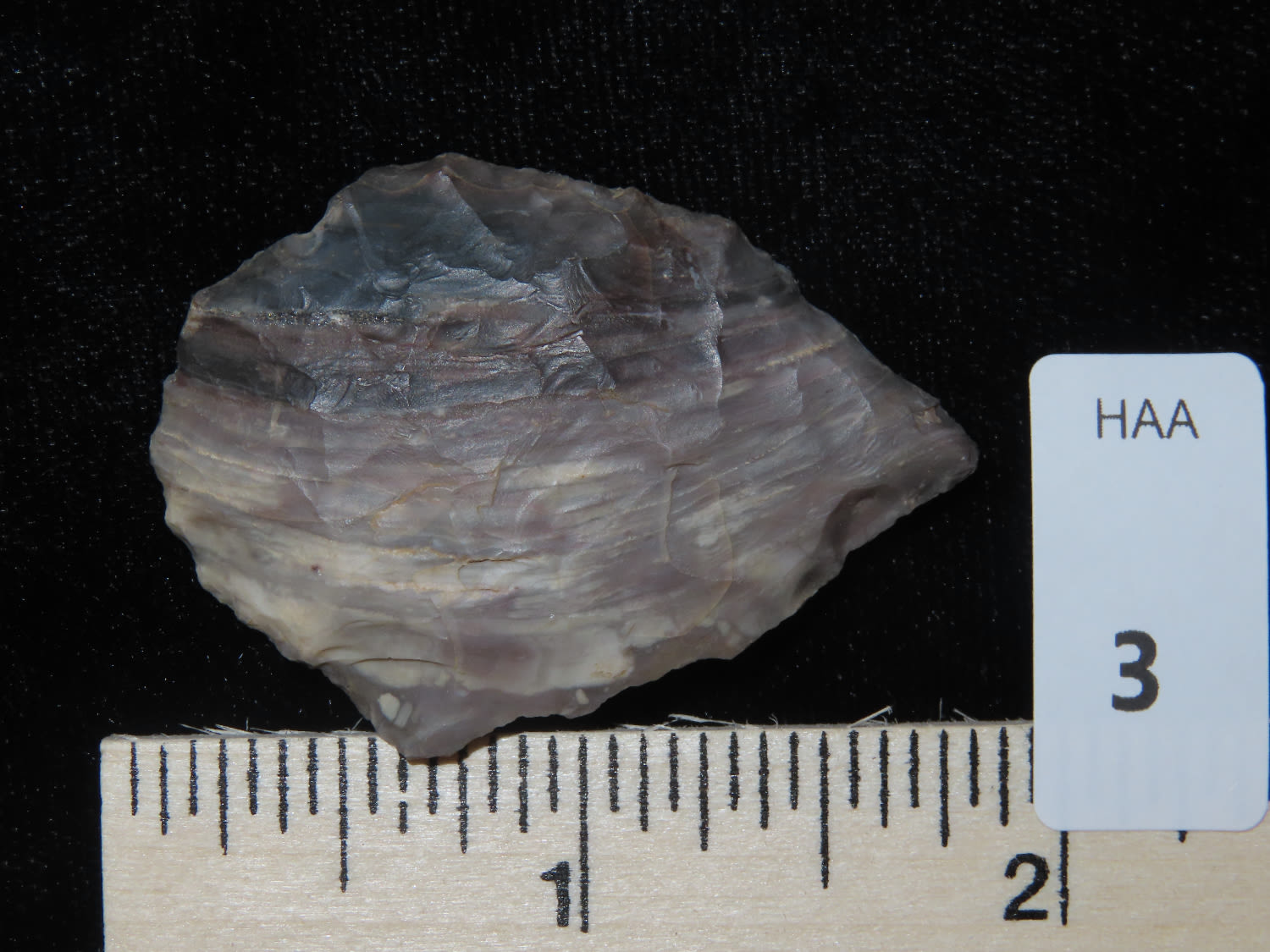 1 3/4″ Point made of a colorful banded chert, from Lee County, Arkansas