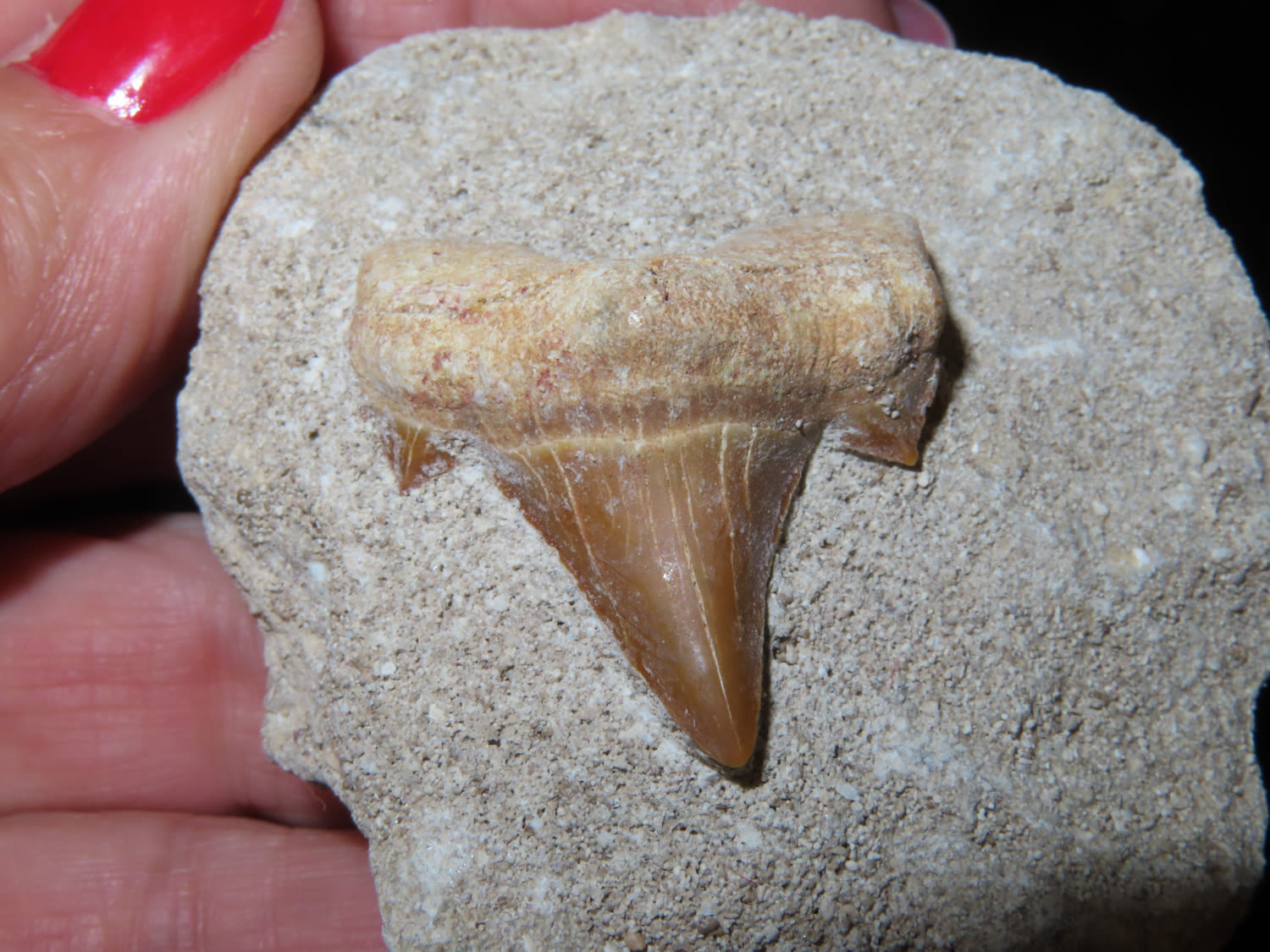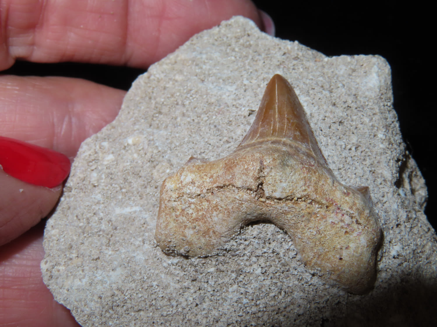 Shark Tooth in Matrix, Fossil, Tooth is 1.1/4″ long