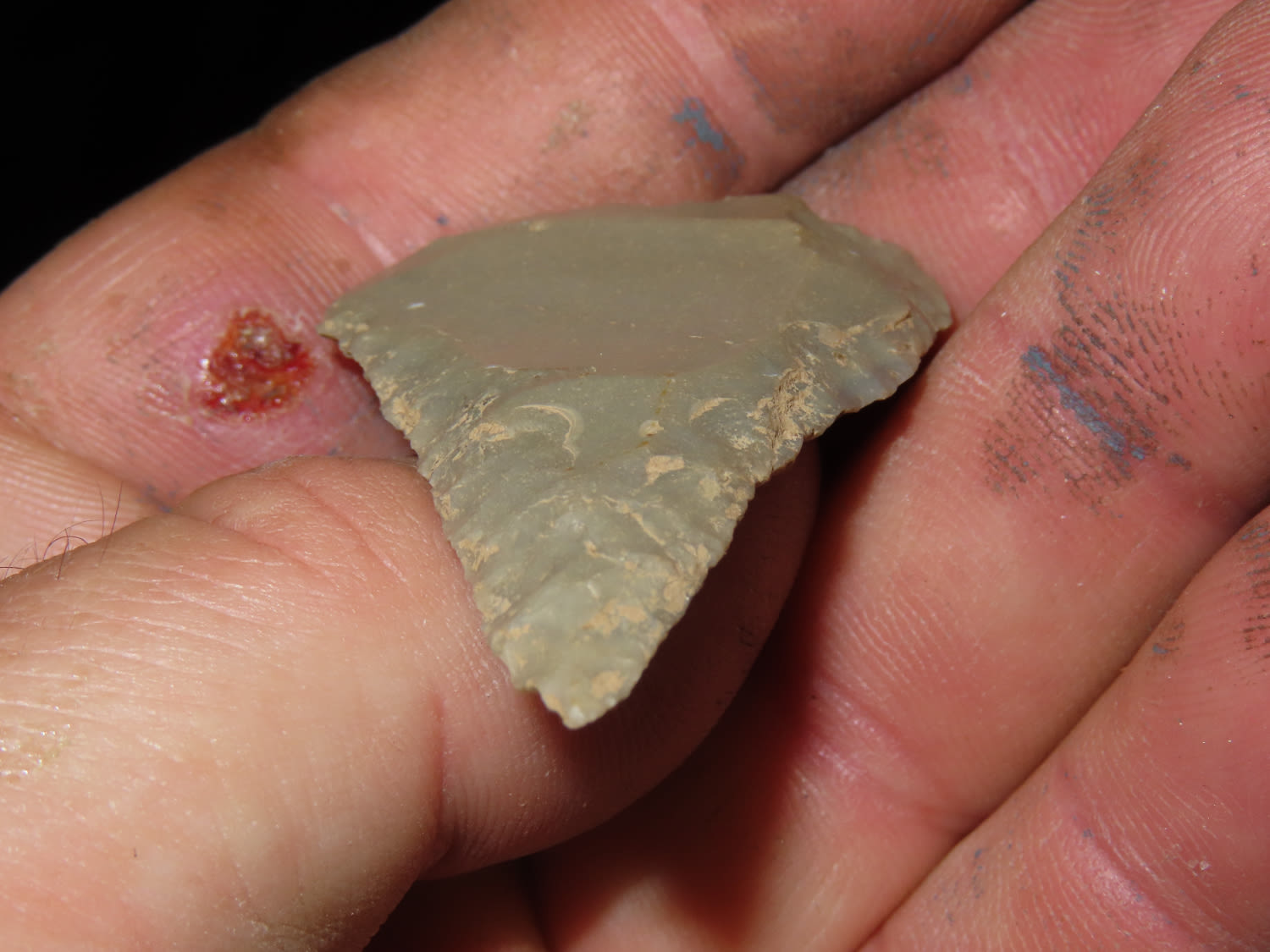 2.1/8″ Well Made Shark Tooth Uniface Knife, Union County Illinois.