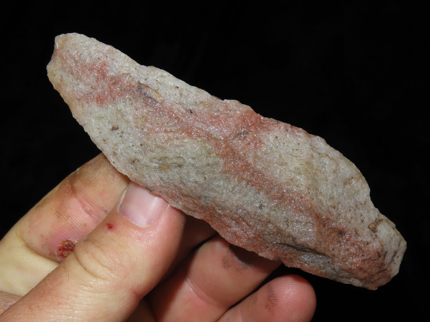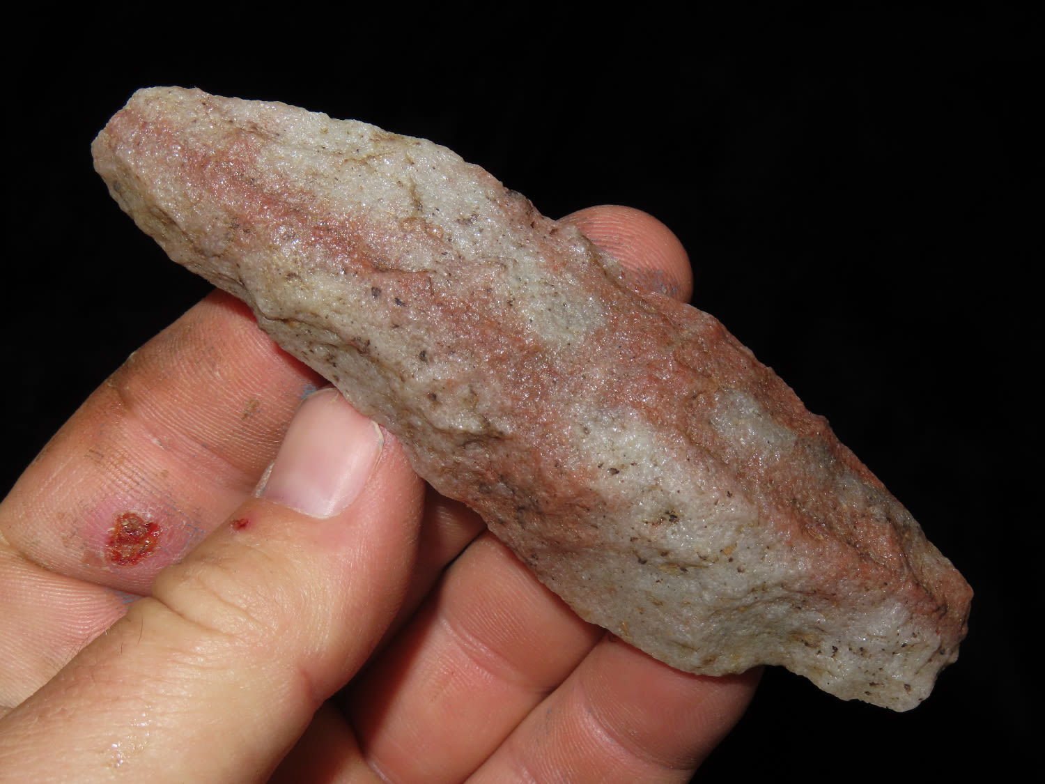 4″ Red and White Quartz Archaic Knife, North Carolina