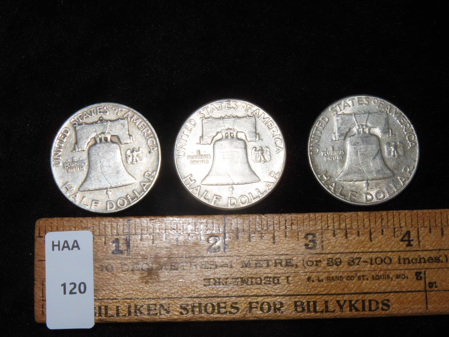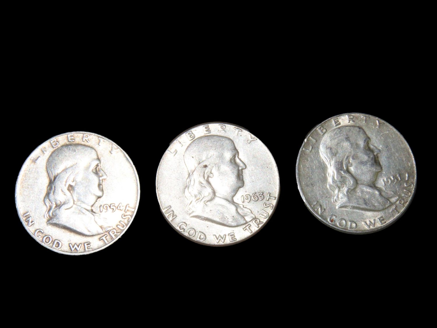 LOT OF 3 FRANKLIN SILVER HALF DOLLARS. ALL DIFFERENT