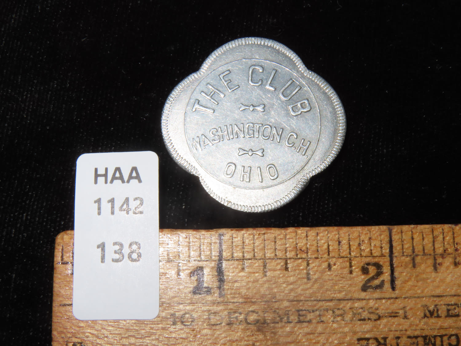 The Club, Washington C.H. Ohio Token for Cigars, Tobacco, Billiards, and Lunch