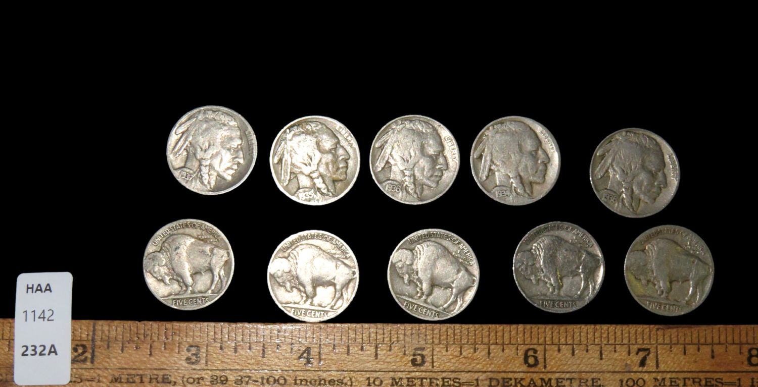 LOT OF 10 FULL DATE BUFFALO NICKELS, CLASSIC EARLY US COINS