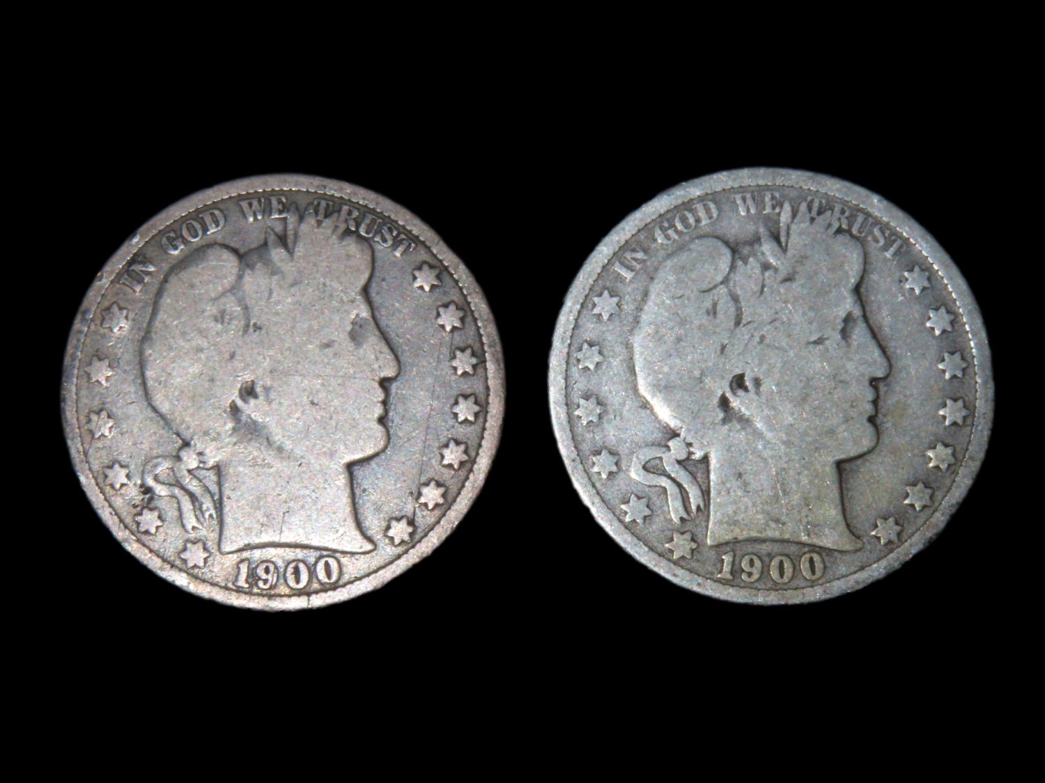 1900-P & 1900-O SILVER BARBER HALF DOLLARS, NEW ORLEANS MINT, 1 OUNCE OF SILVER, EARLY US COINS