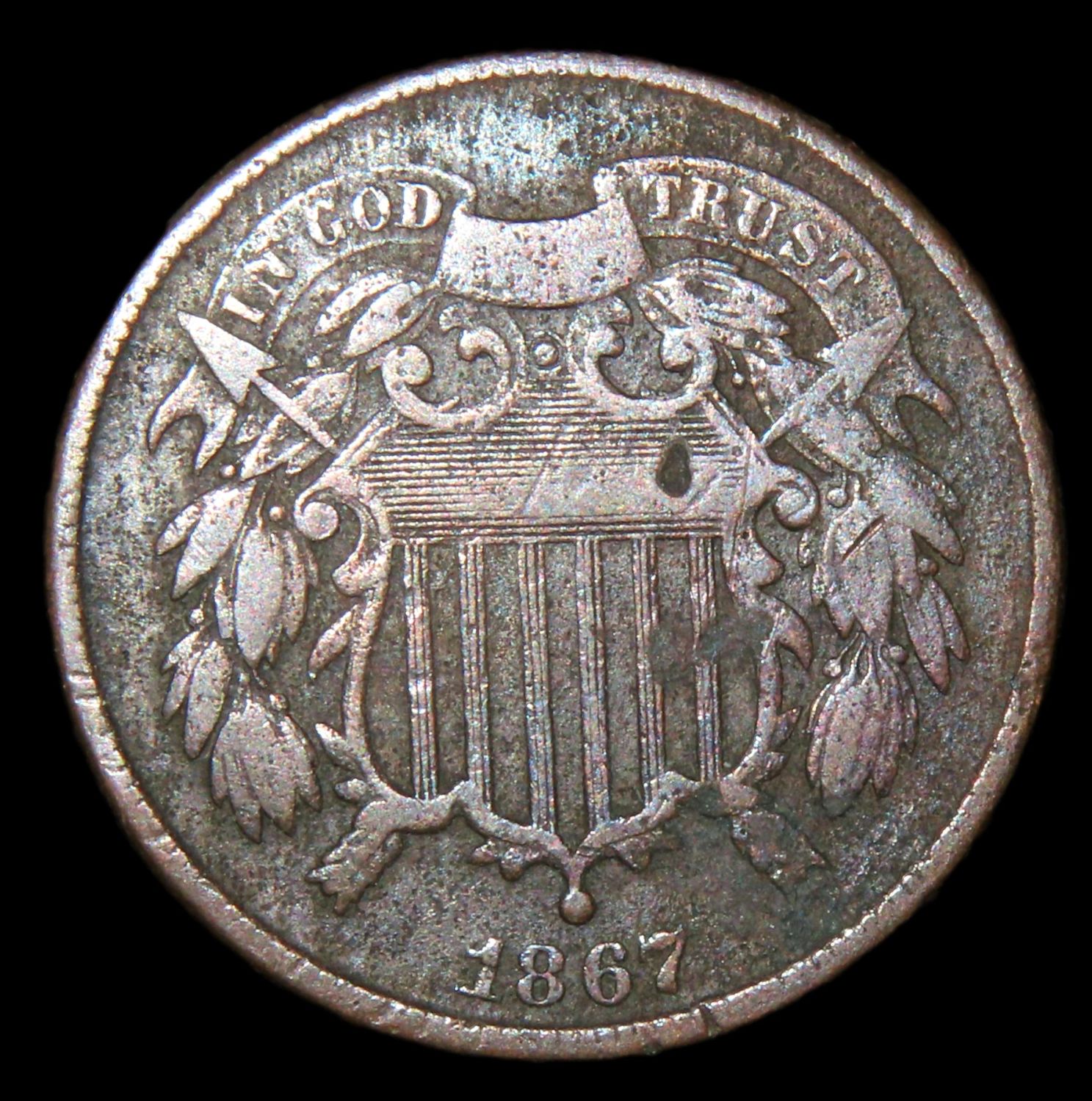 1867 TWO CENT PIECE, EARLY US COIN, 2 CENT