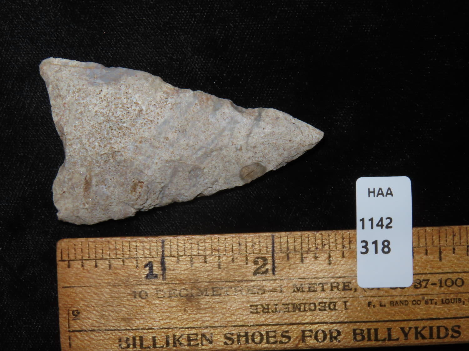 2 5/8″ TRIANGLE DALTON KNIFE FOUND IN KENTUCKY BY LEROY WILLIAMS, ARROWHEAD INDIAN ARTIFACT