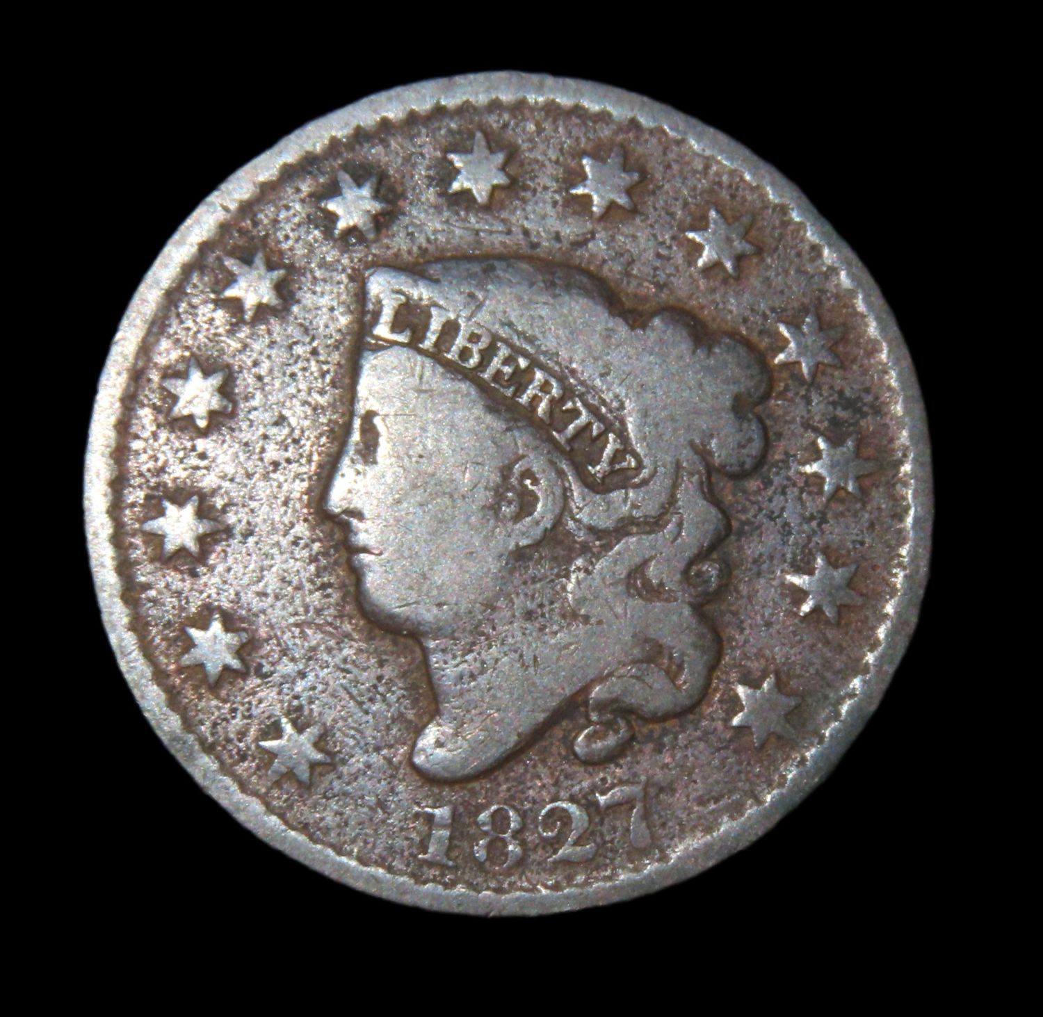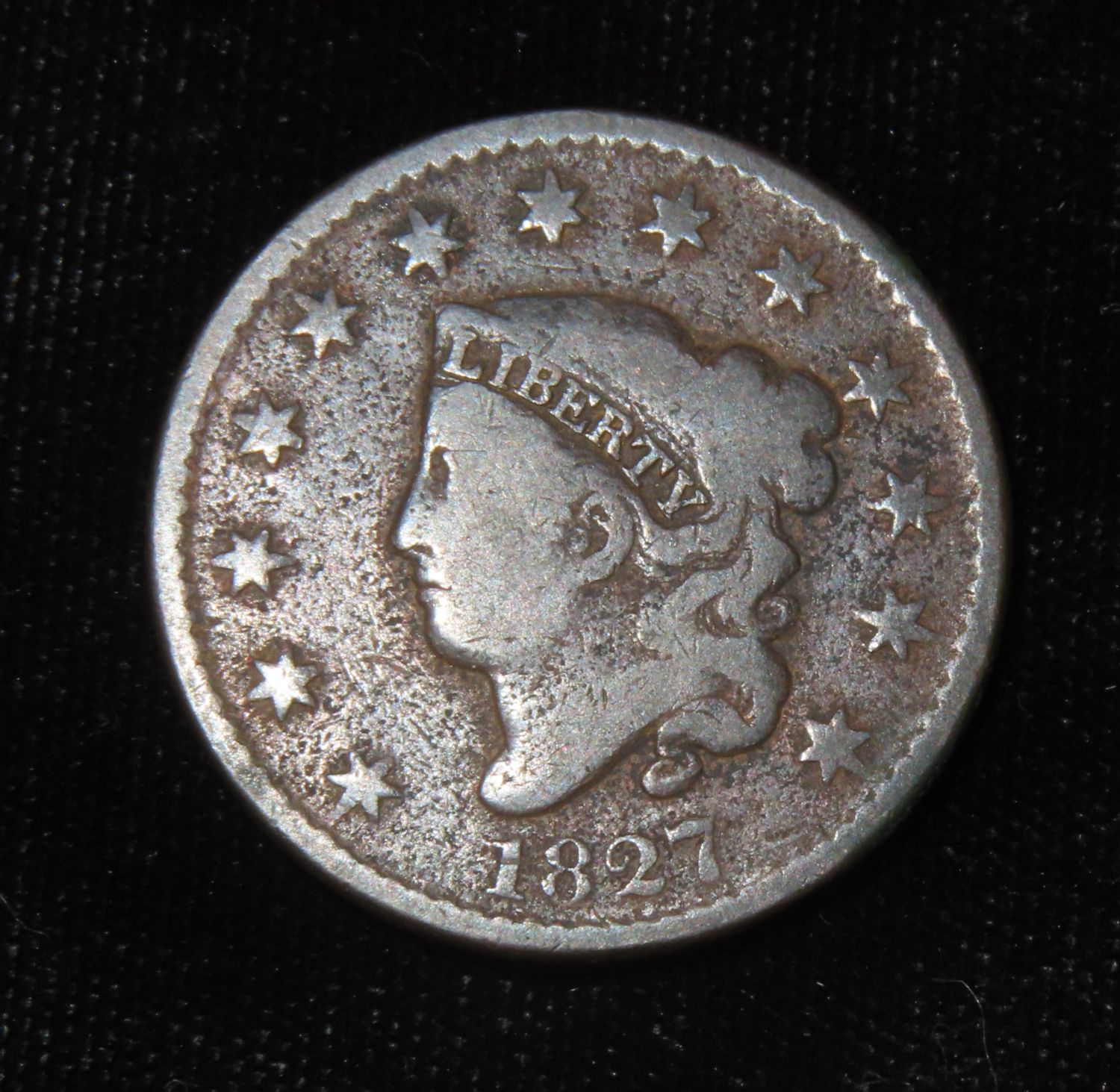 1827 LARGE CENT, FULL LIBERTY, NICE EXAMPLE