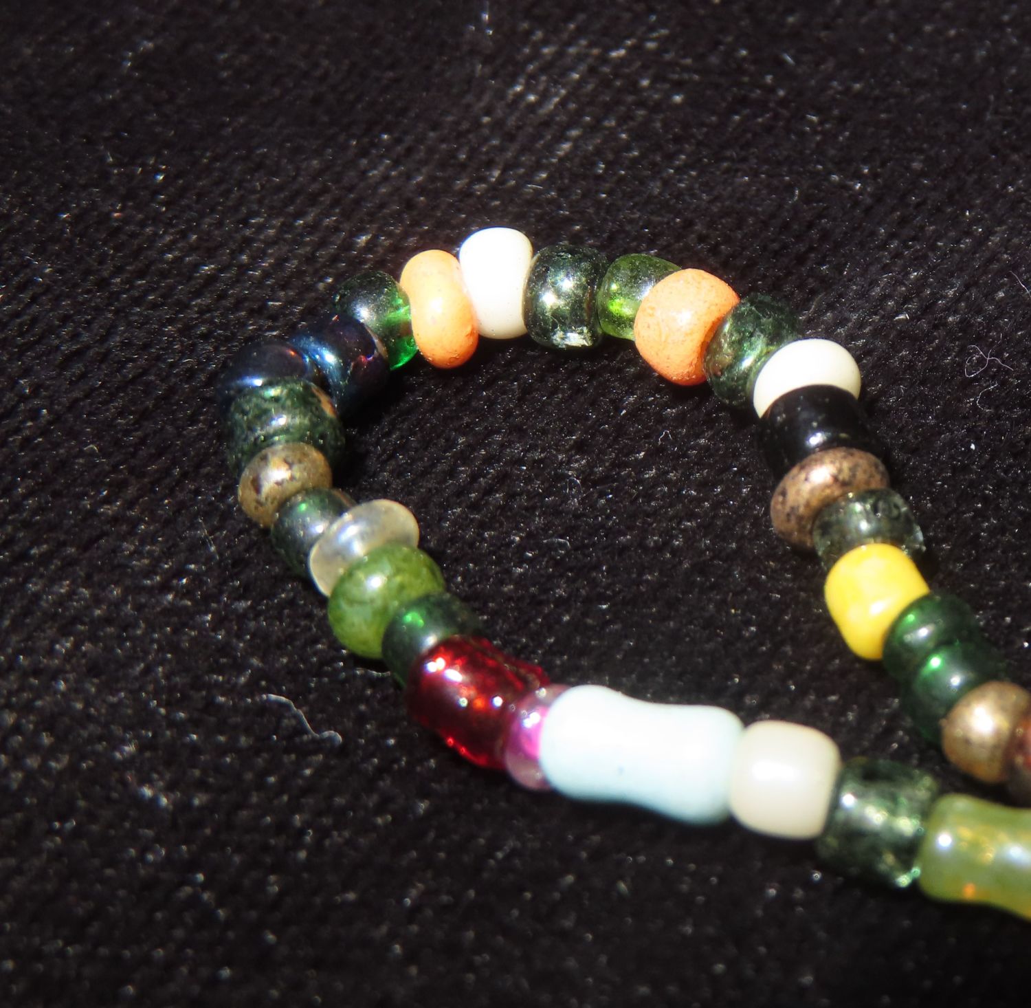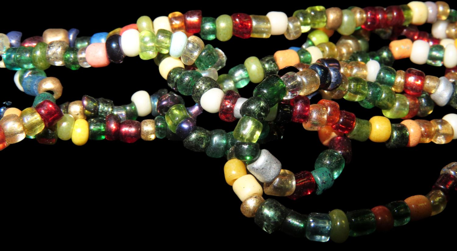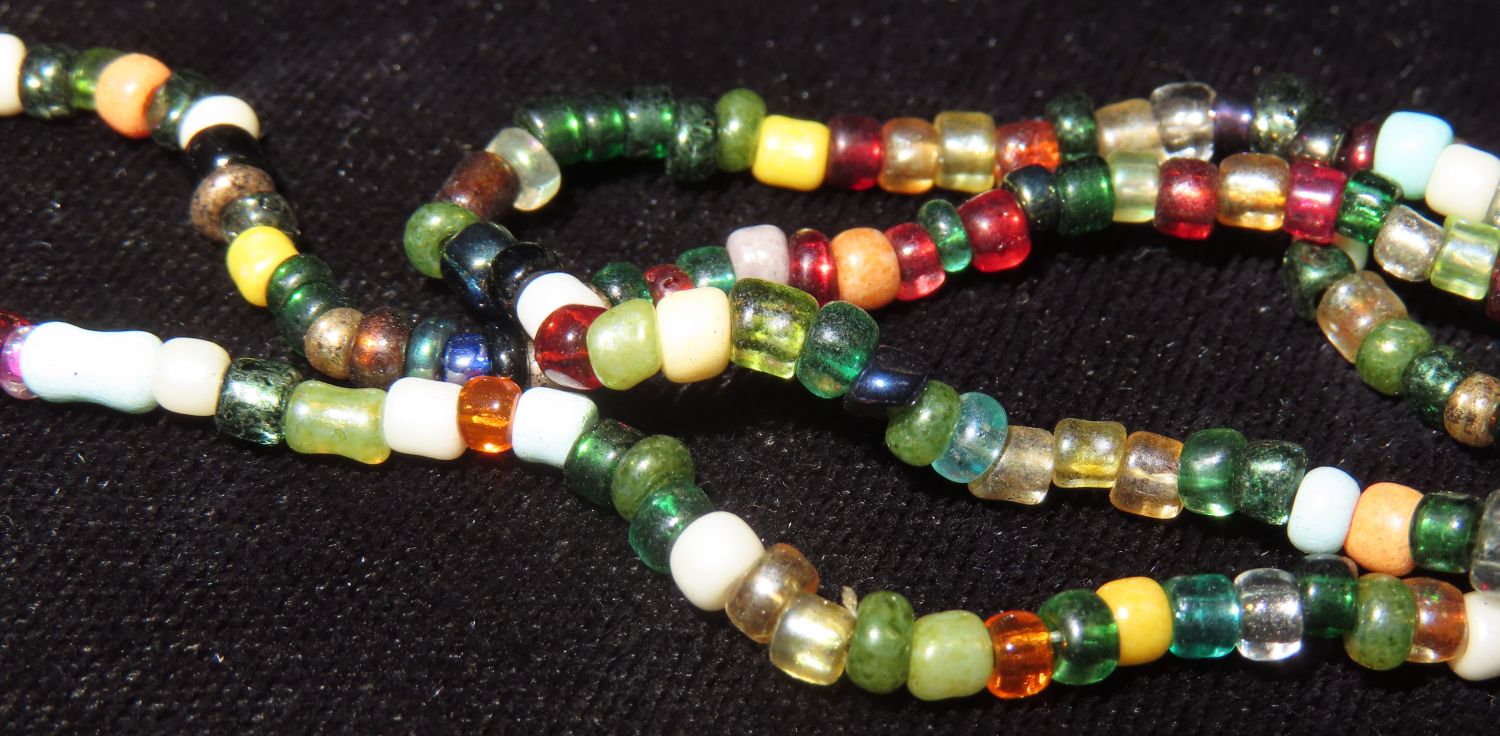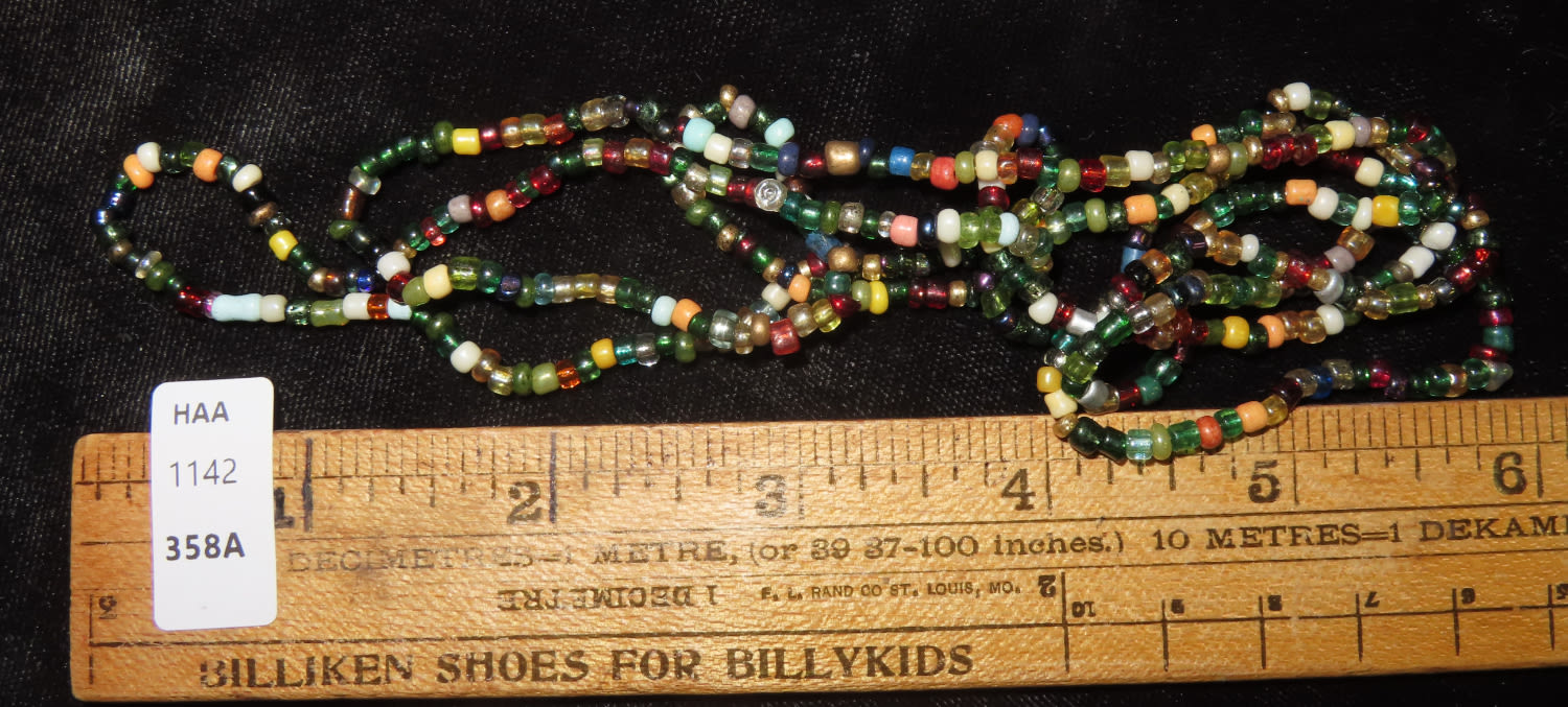 NICE 34″ LONG STRAND OF COLORFUL EARLY GLASS TRADE BEADS