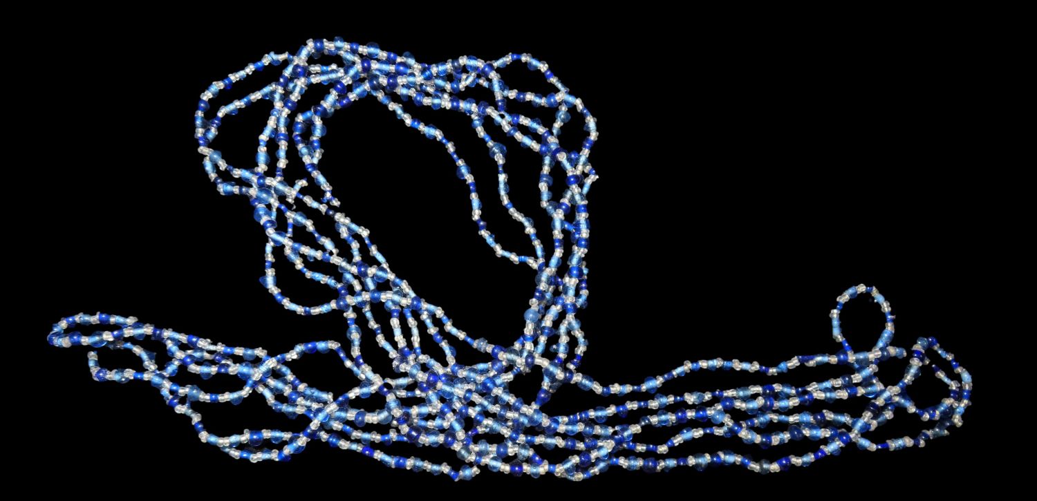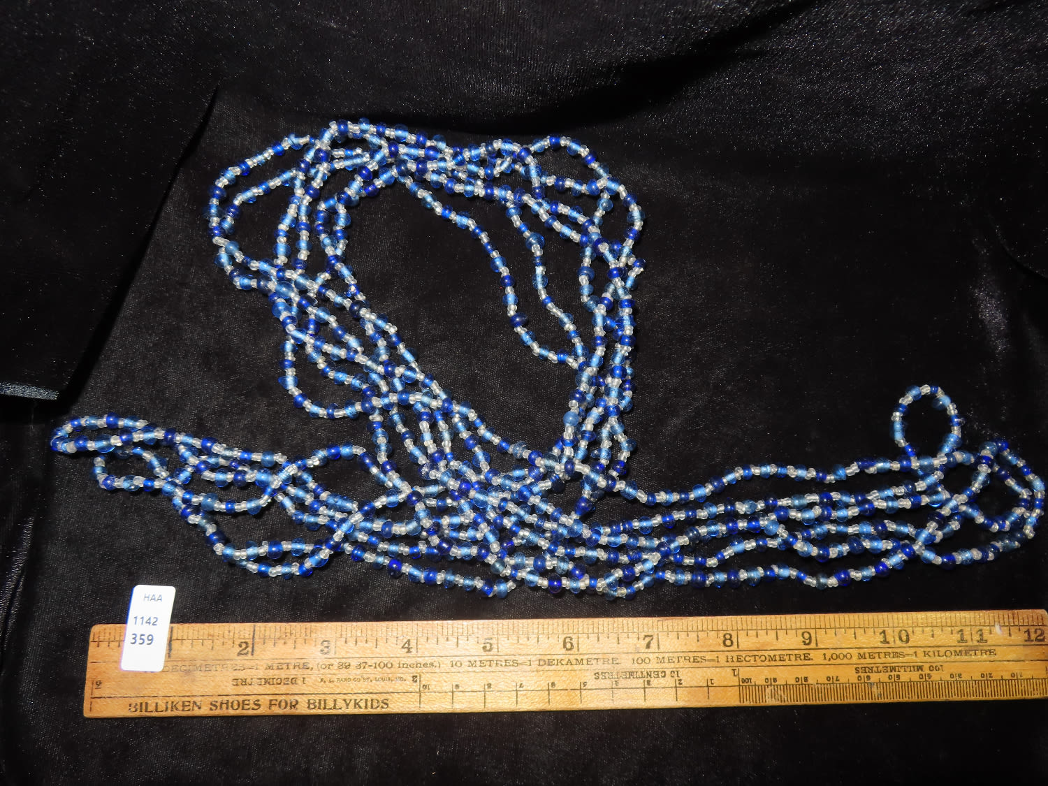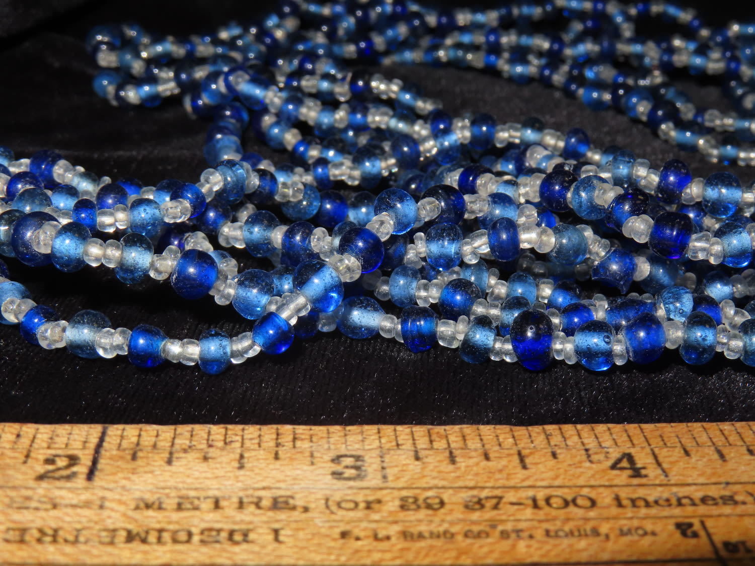 3 Strands of Dark Blue, Light Blue, and Clear Glass Beads, each approx.58″ total length