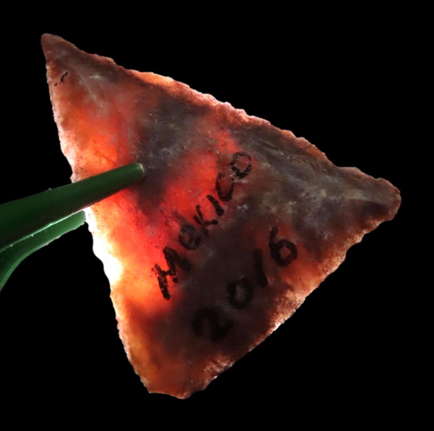 1 1/2″ Early Transluscent Triangle-deep red color- out of Mexico in 2016