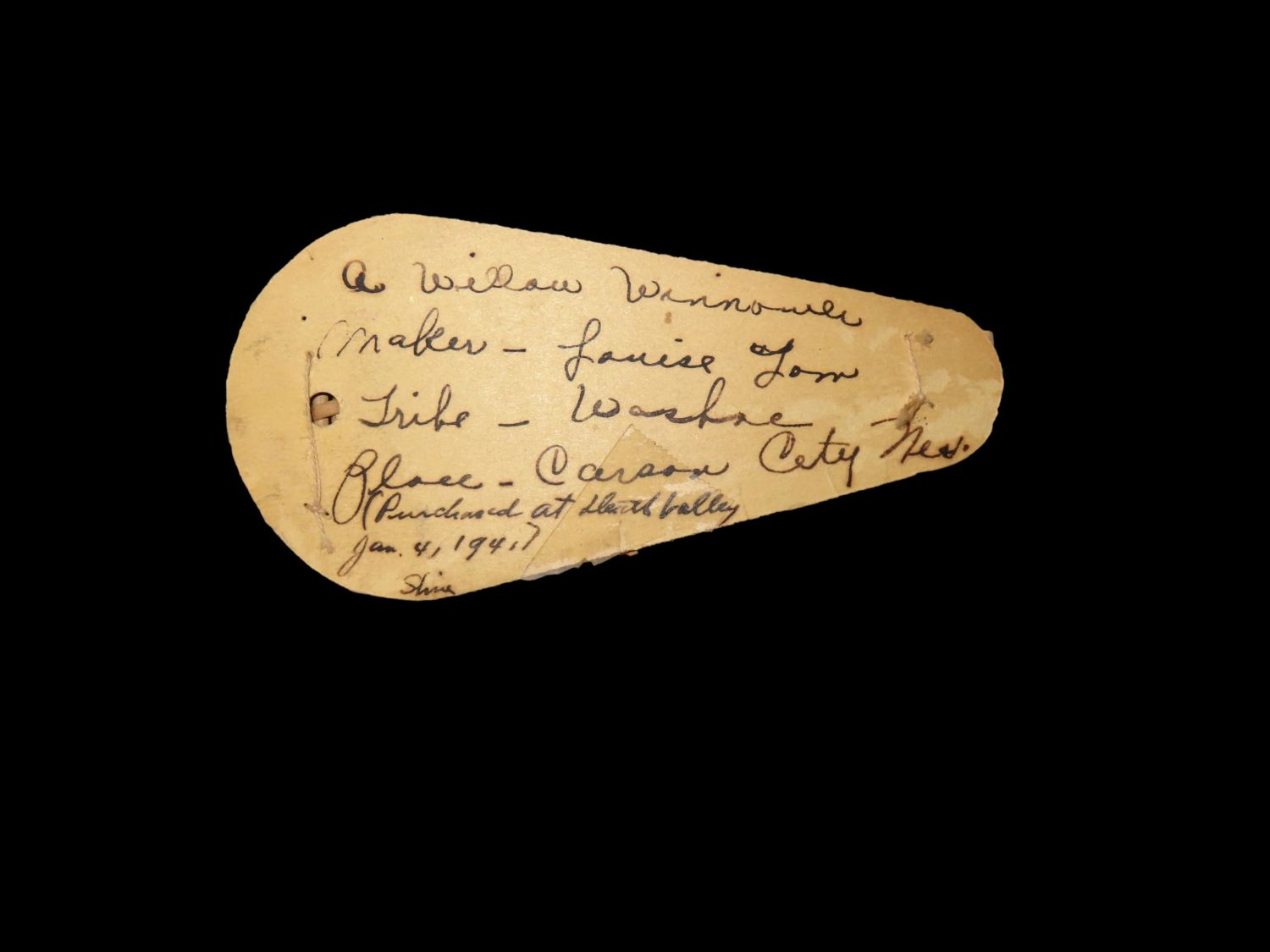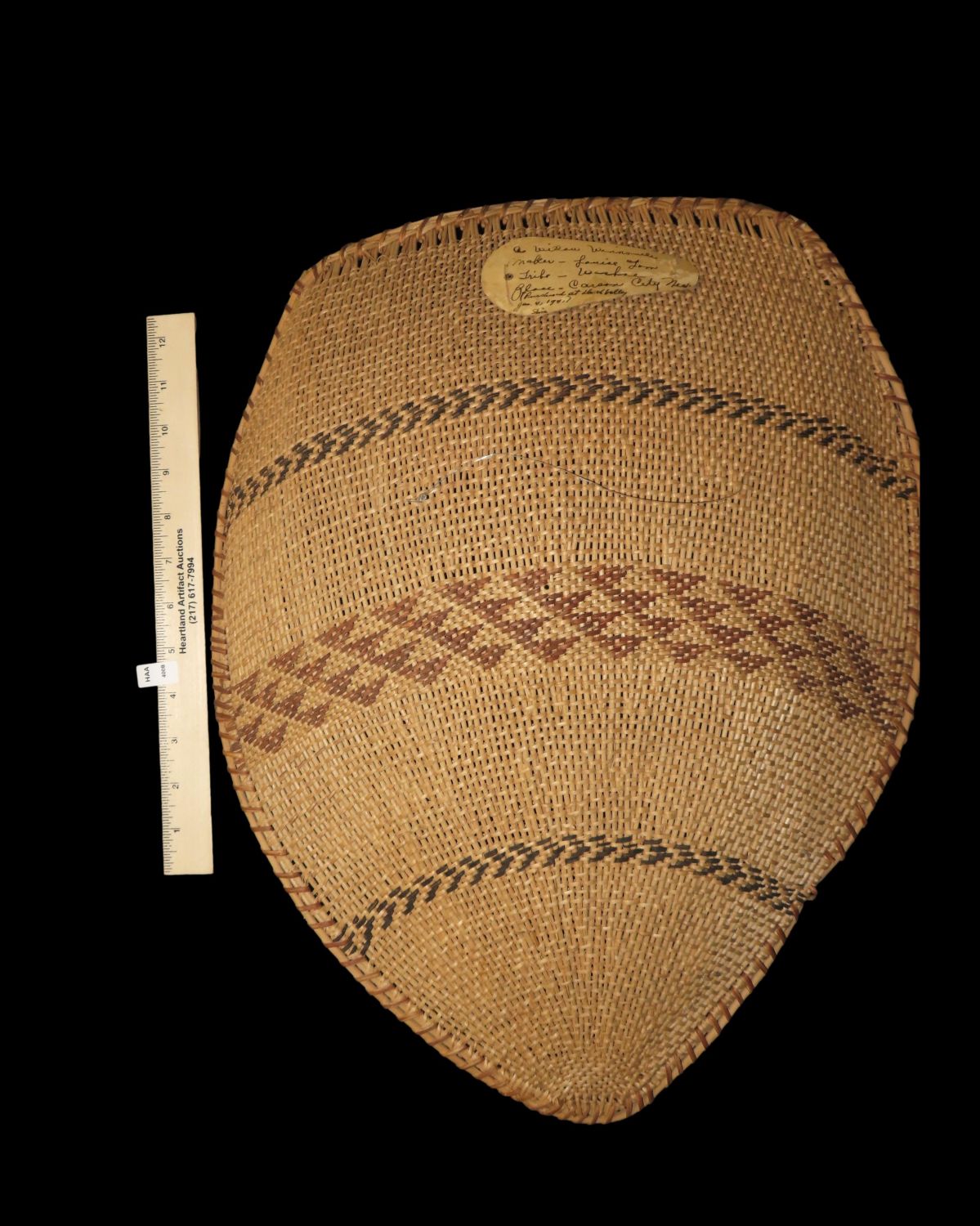 Winnowing Basket, Washo, Pre 1941, 20″ long From the Collection of Walter Crinnion with Orgional Collector Record