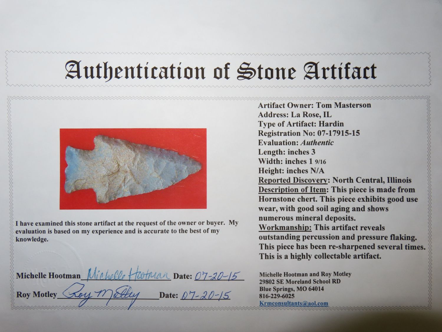 3″ Hardin, Motley COA, found in Northern Illinois, Nicely Beveled