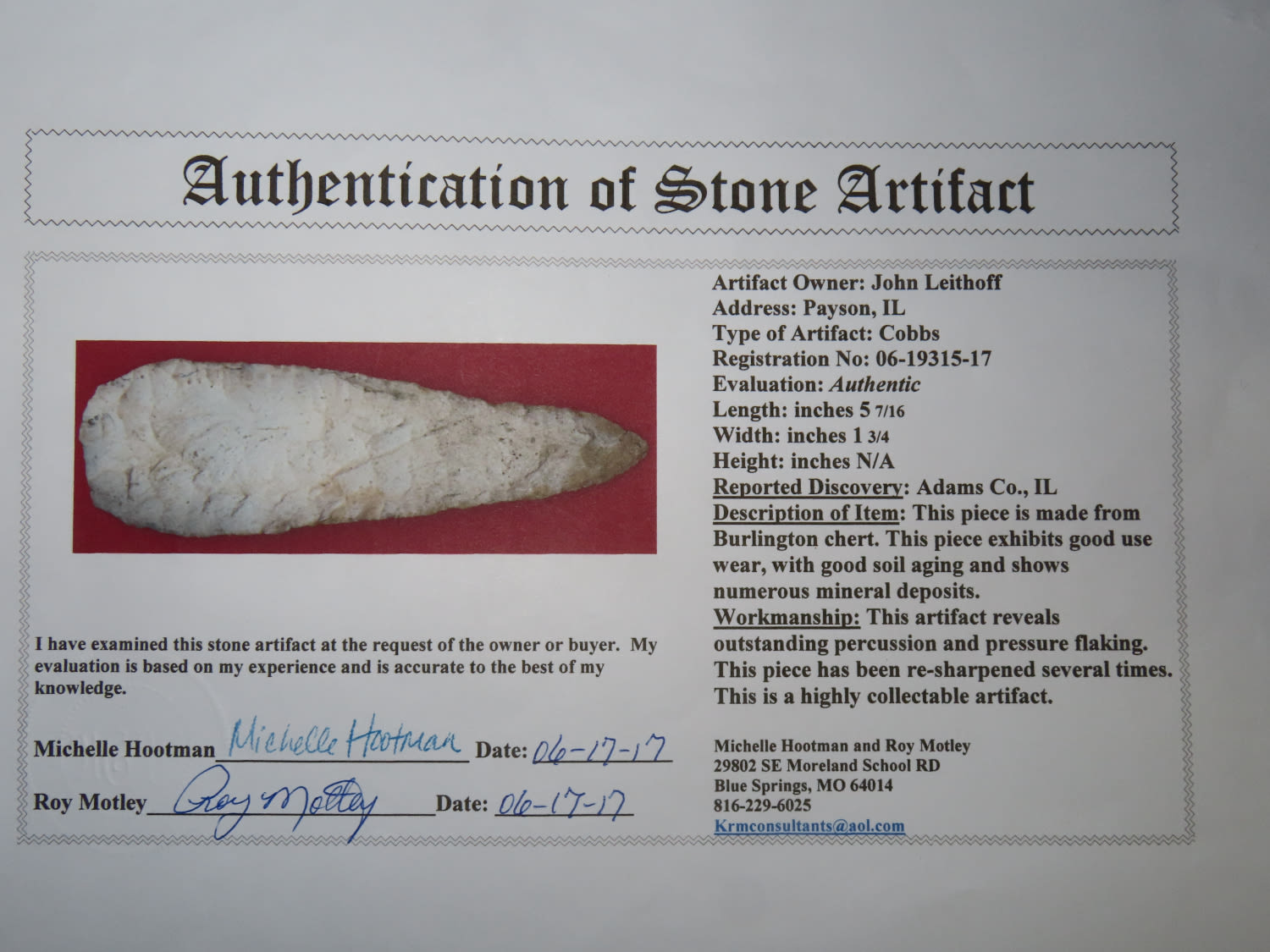 5.7/16″ Cobbs Knife, Adams County IL, Motley COA, Ex John Leithoff Coll.