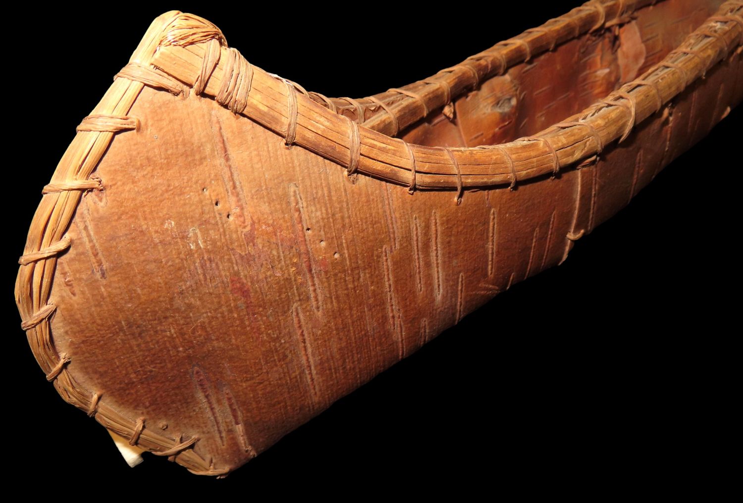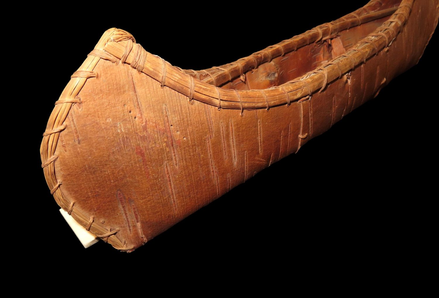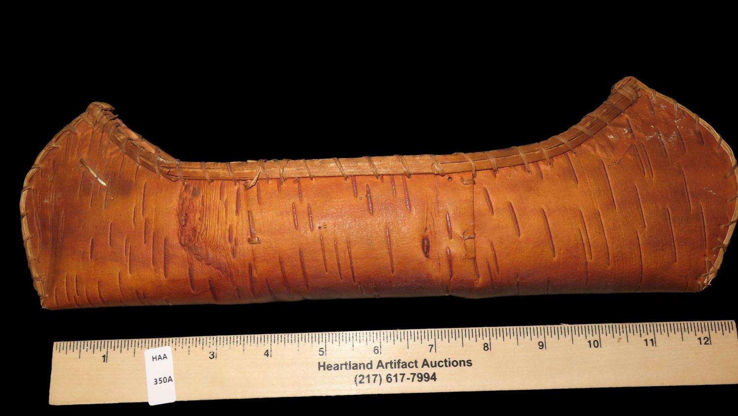 Native American Birch Bark Toy Canoe, 12.1/2″ From the Collection of Walter Crinnion
