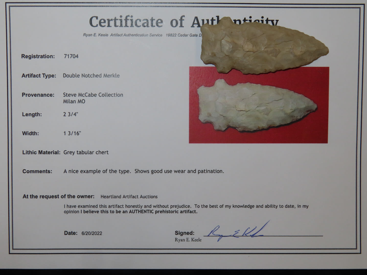 2.3/4″ Merkle Double Notched Point, Keele COA, Ex Steve McCabe Coll. Milan Missouri