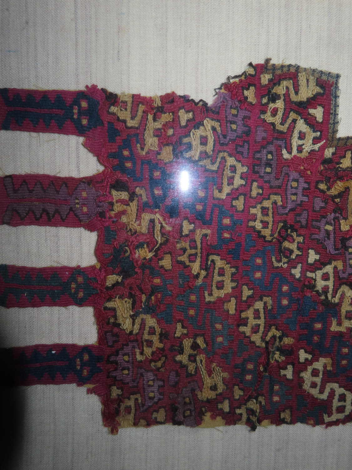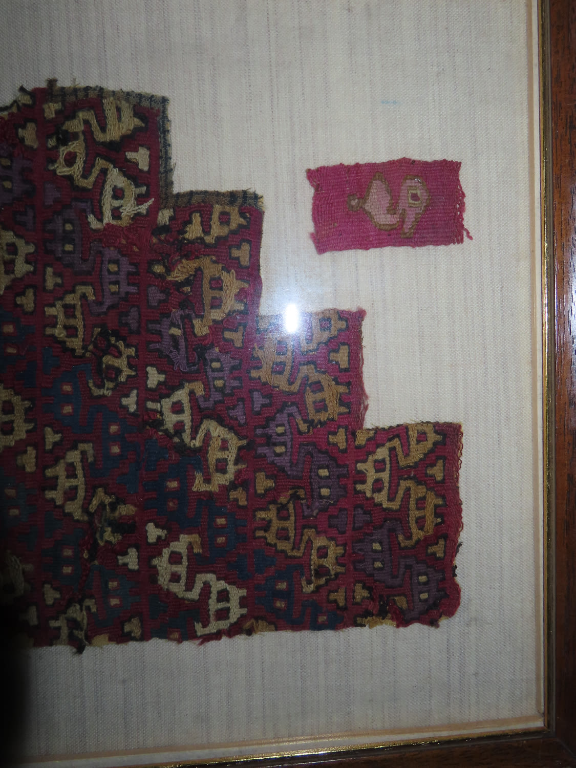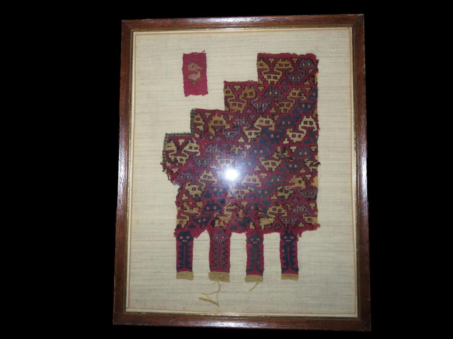 Pre Columbian Peruvian Textile effigy of a Llama , in a frame, Ex Greg Perdun / Mitch Lewis, Frame measures 14.5×11.3/4″