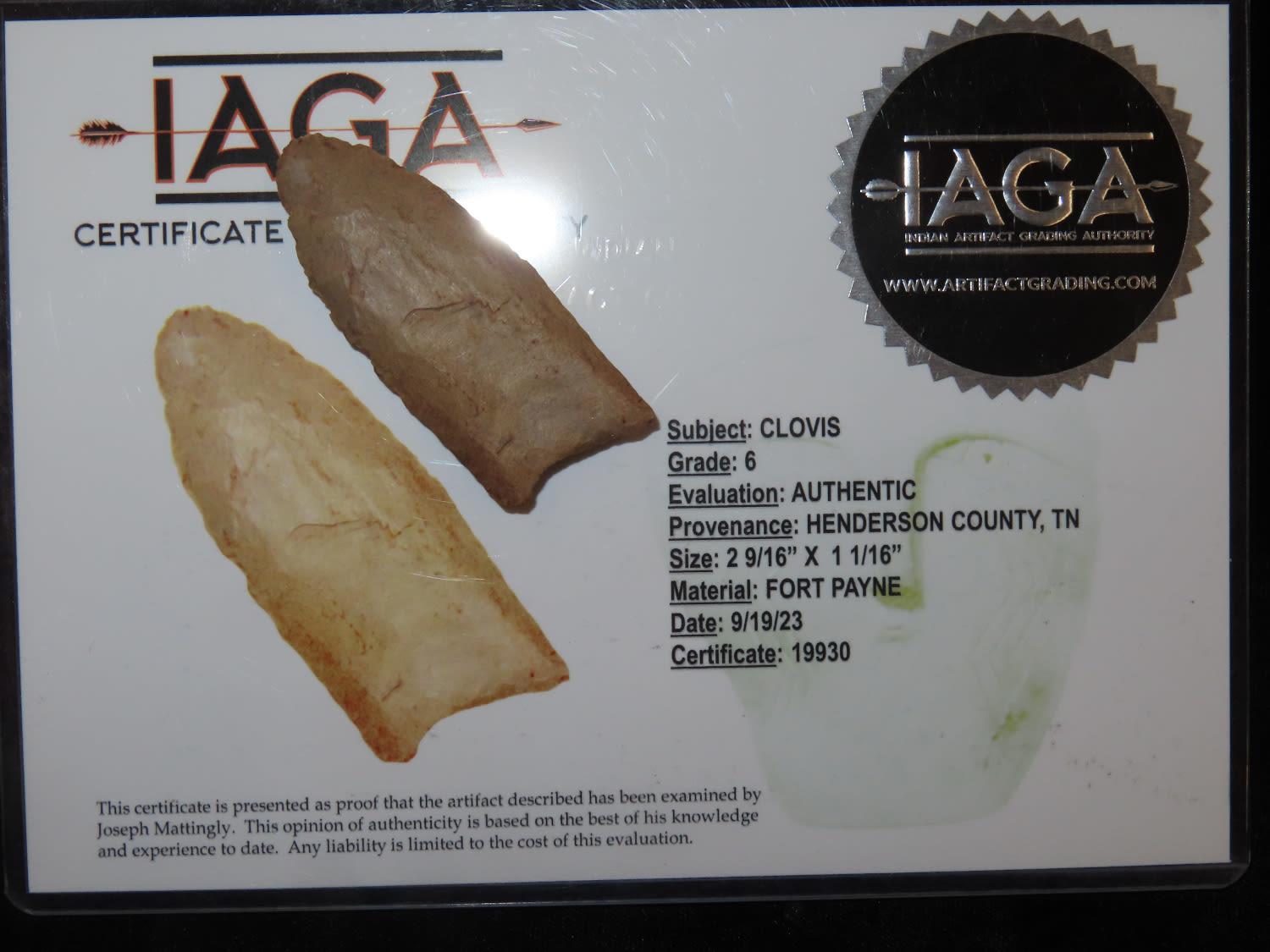 2.9/16″ Fluted Clovis, Henderson Co KY, IAGA COA