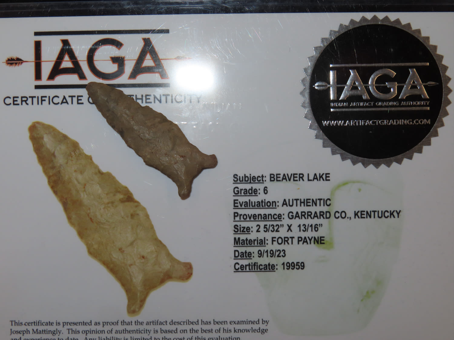 2.1/8″ Beaver lake, Garrard CO KY, IAGA COA