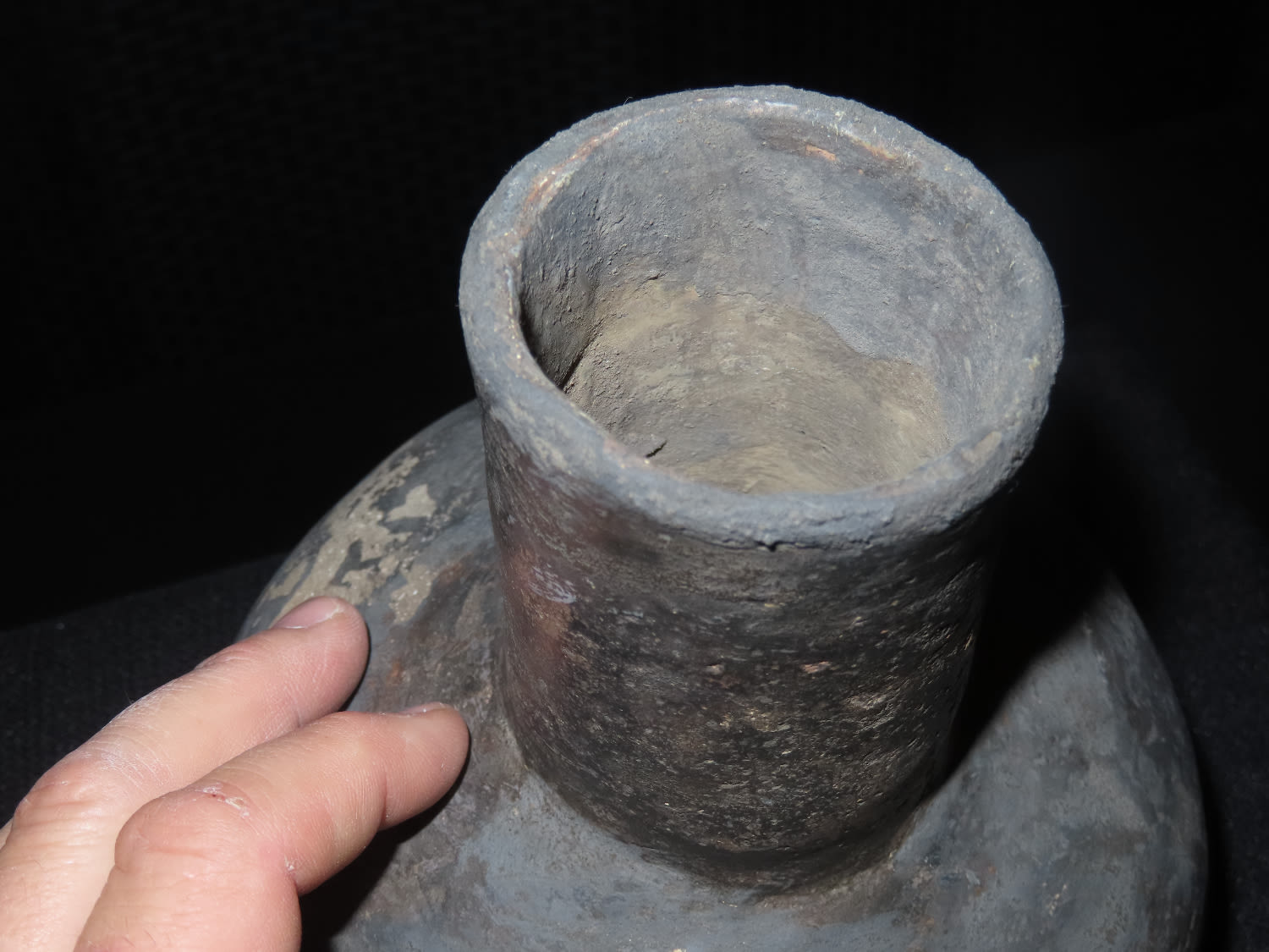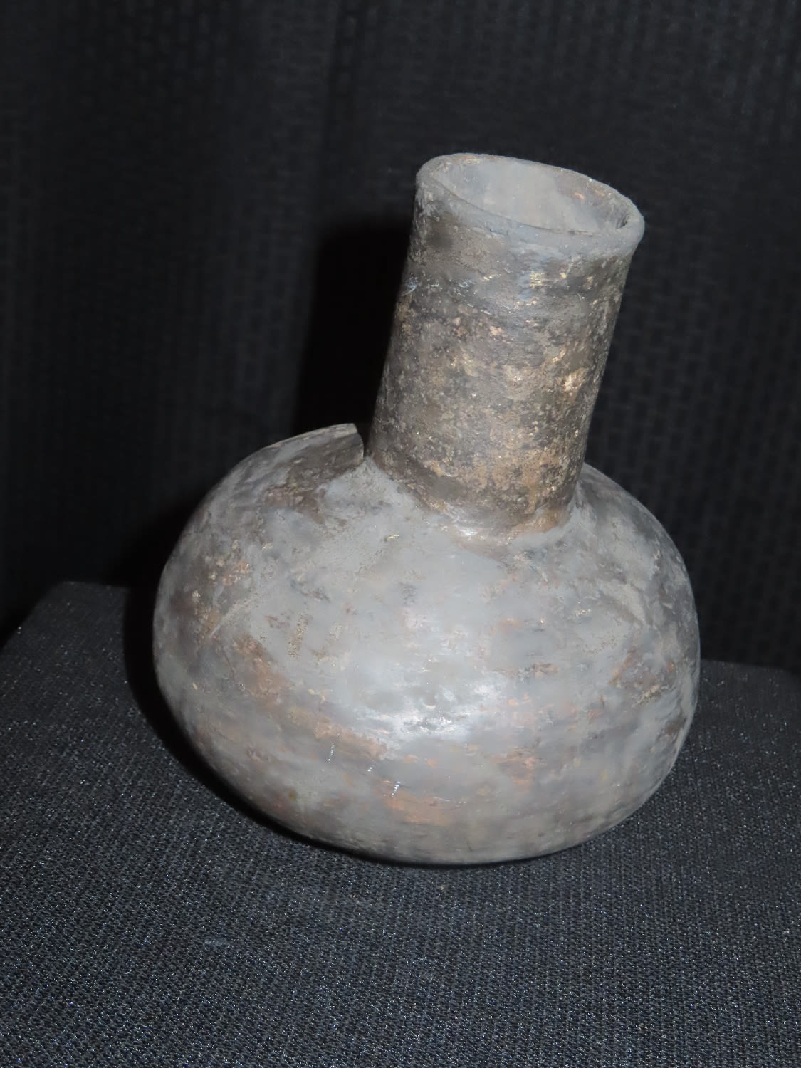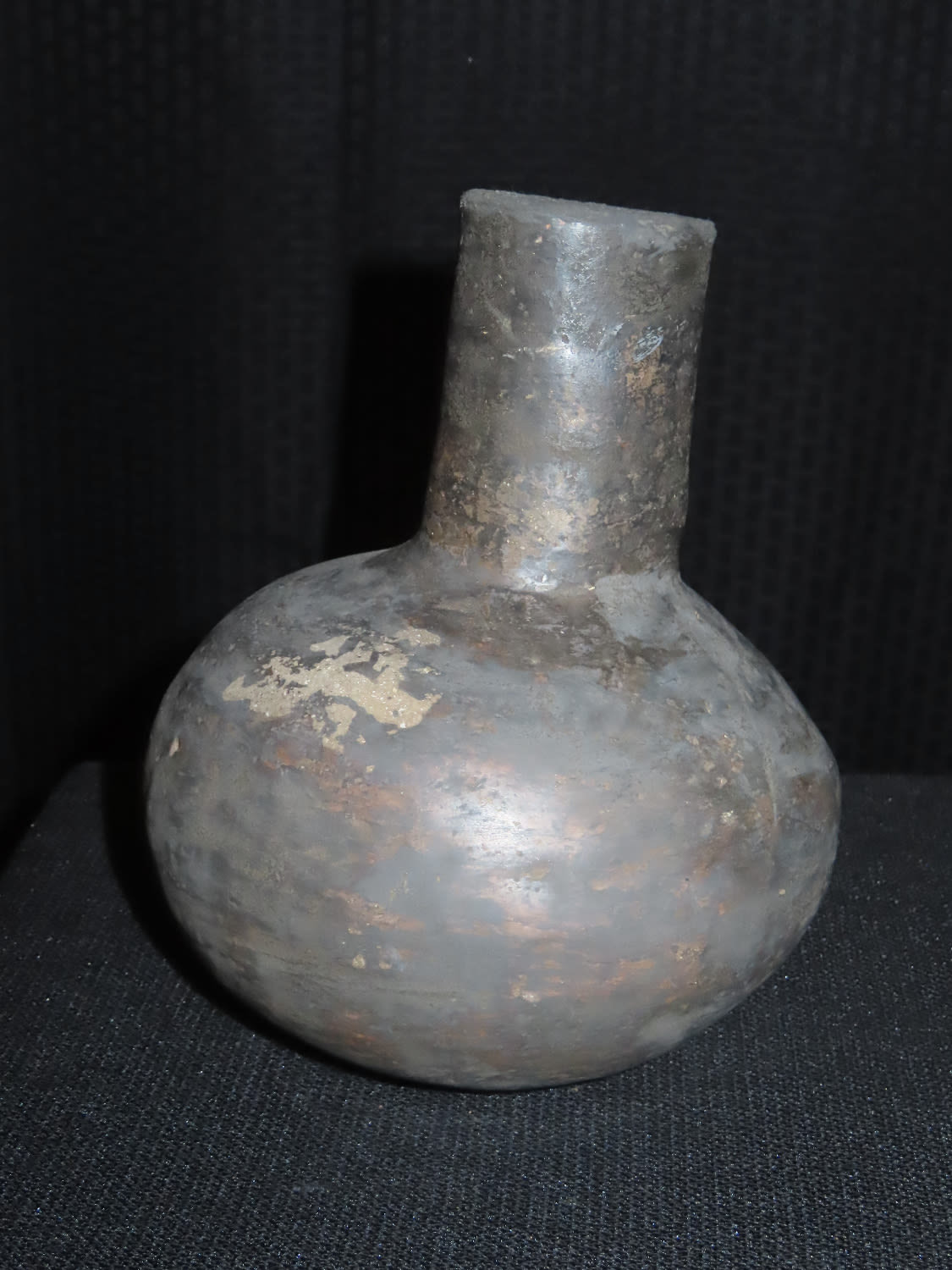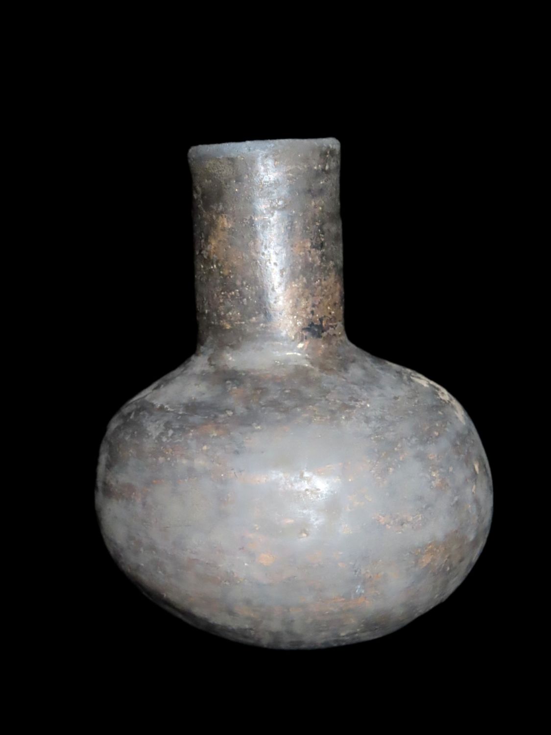 8″ Tall Water Bottle Pottery Vessel, Mississippian. Major old restoration, This Section of Relics / Fossils came from the Byron Knoblock Estate Sale in Quincy Illinois Ex Mary Jo Hunt Collection