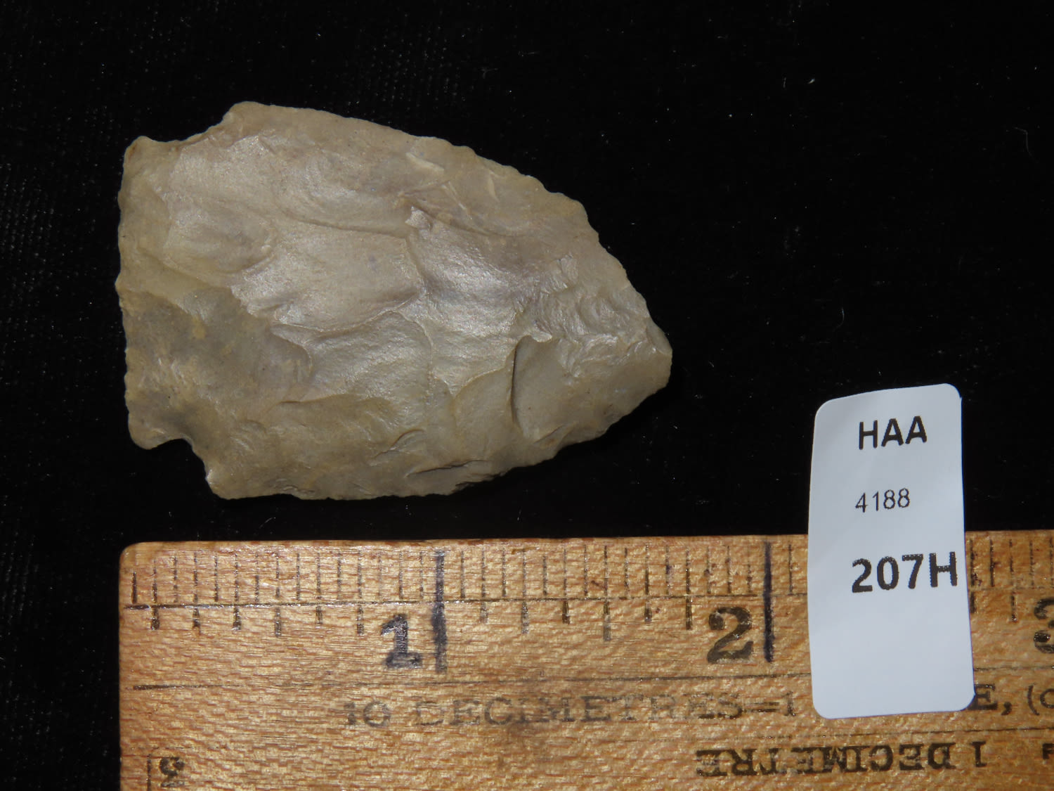 1 3/4″ Brewerton Side Notch, found in Blount Co., Alabama- from a private collection