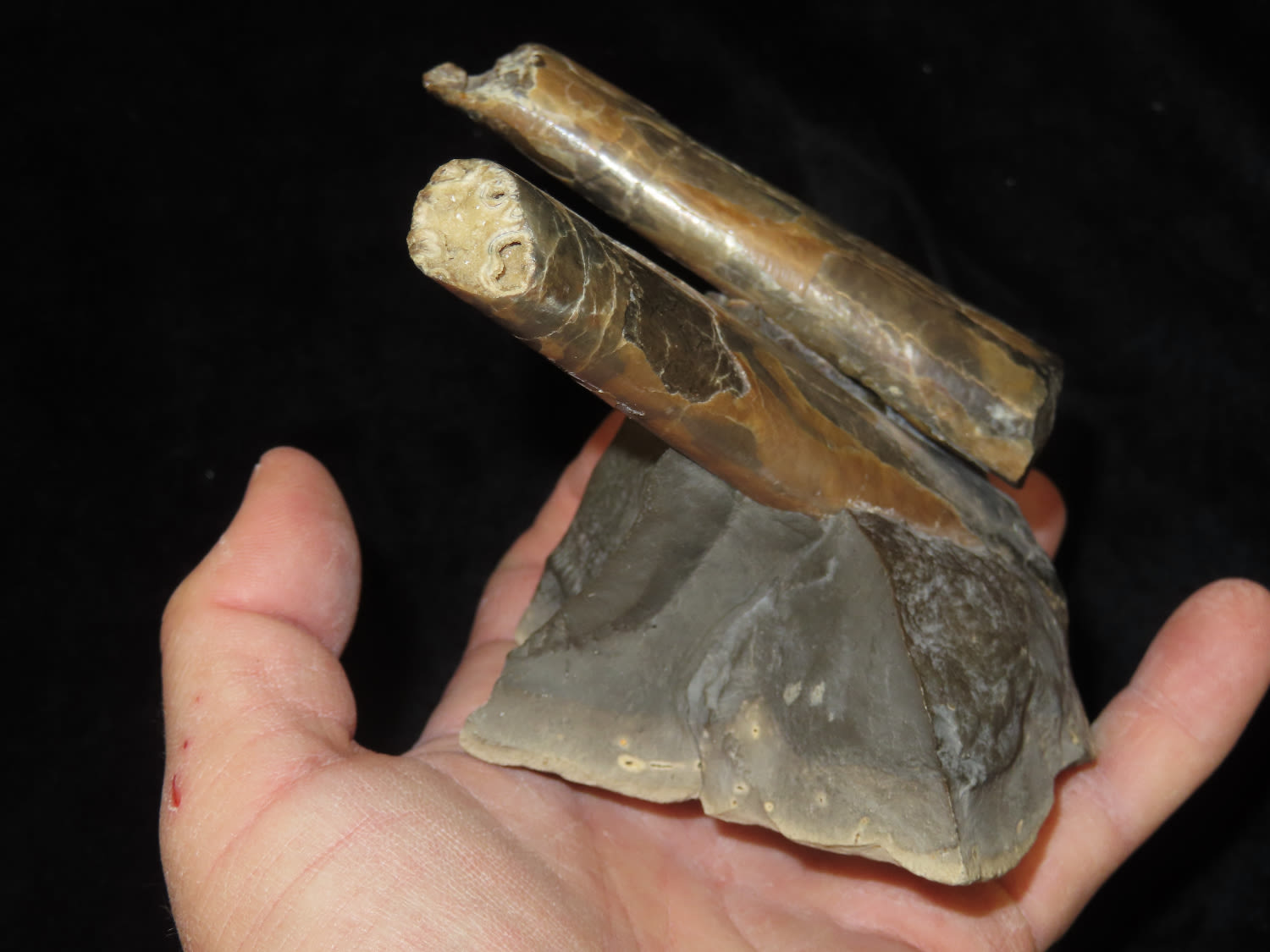 Amazing Ammonite Fossil, South Dakota, 3.1/2″ Tall, specimans are approximatly 4″ long, This Section of Relics / Fossils came from the Byron Knoblock Estate Sale in Quincy Illinois Ex Mary Jo Hunt Collection