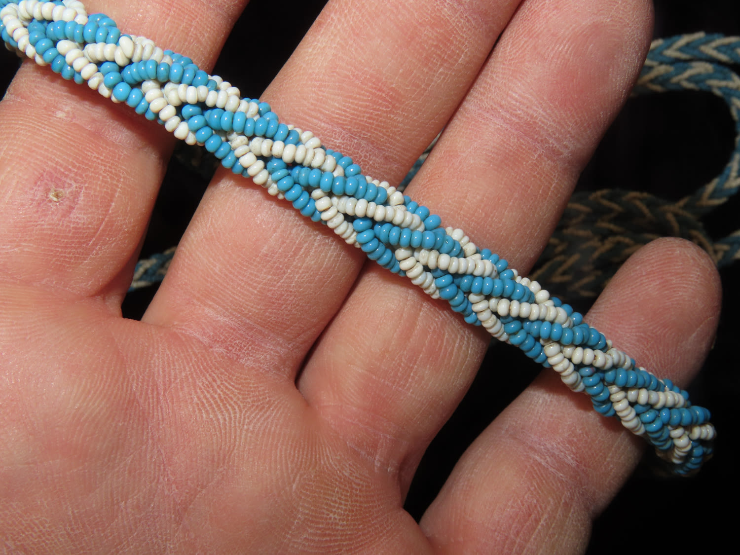 Early Native American Beaded Sash / Belt, 88″ Long, This Section of Relics / Fossils came from the Byron Knoblock Estate Sale in Quincy Illinois Ex Mary Jo Hunt Collection