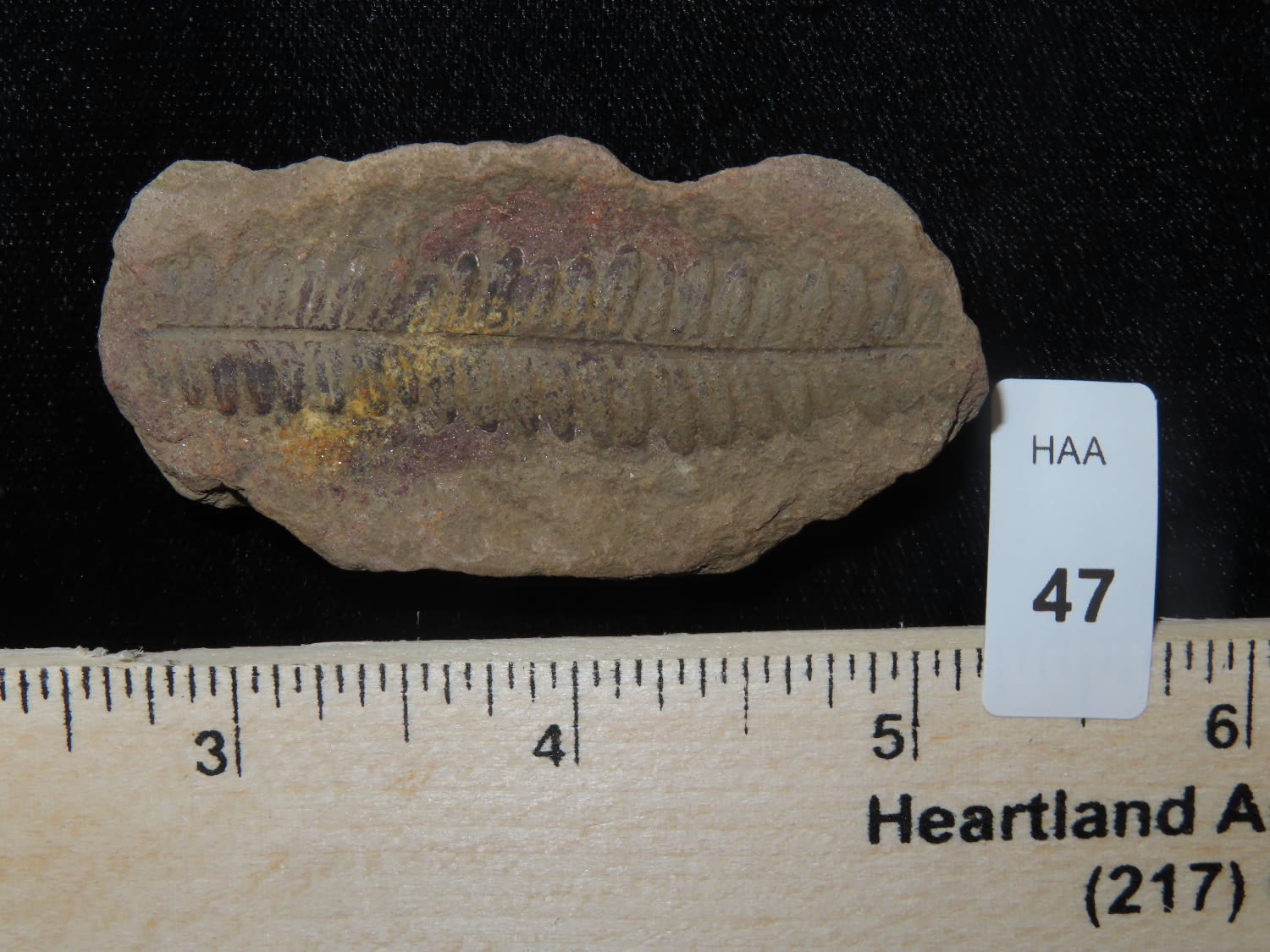 5.1/4″ Illinois Mazon Creek Fern Fossil with Mutiple Specimans. This Section of Relics / Fossils came from the Byron Knoblock Estate Sale in Quincy Illinois Ex Mary Jo Hunt Collection