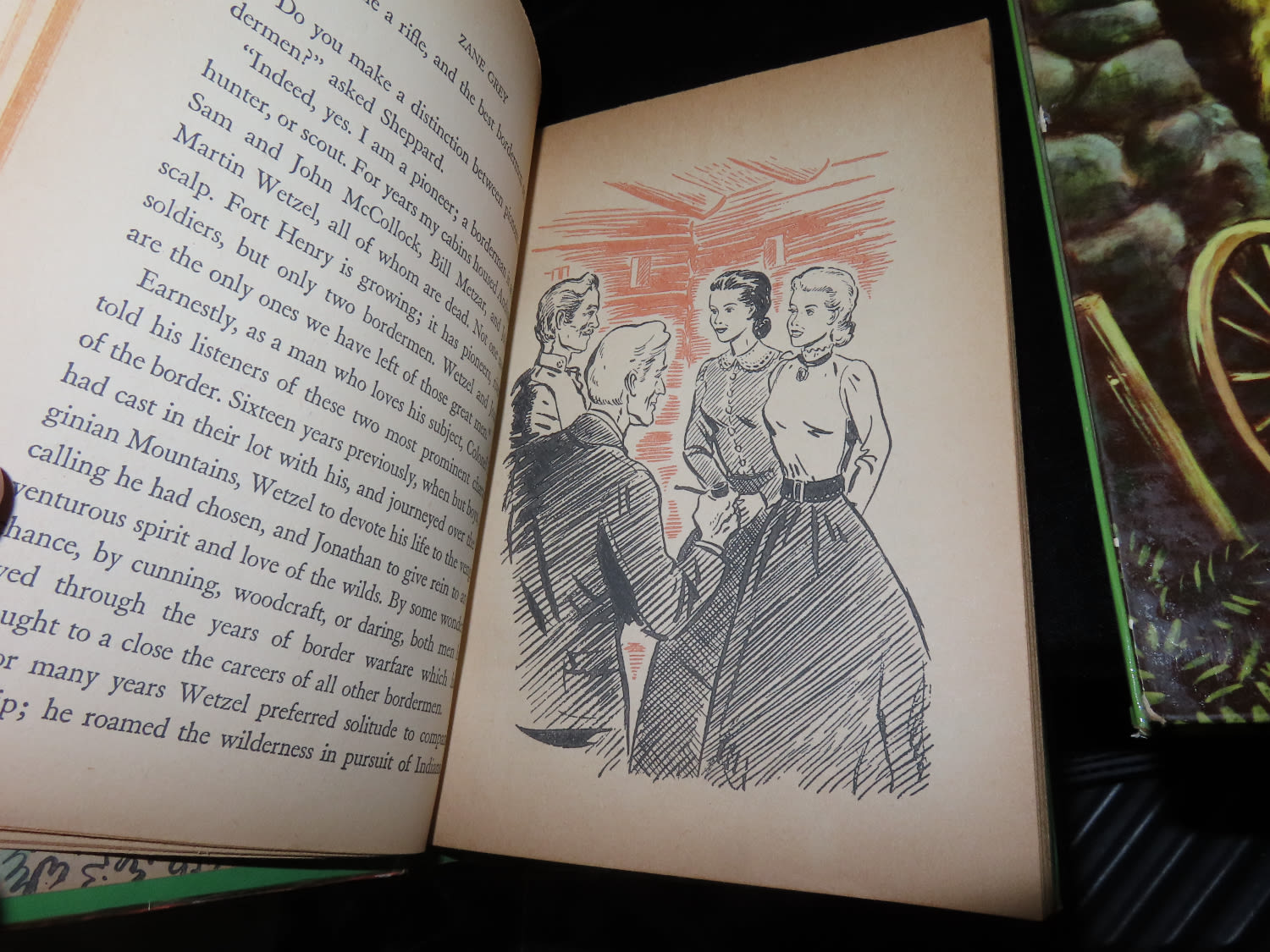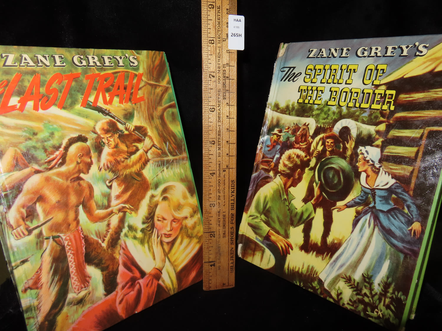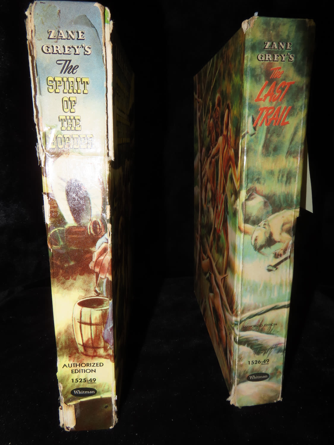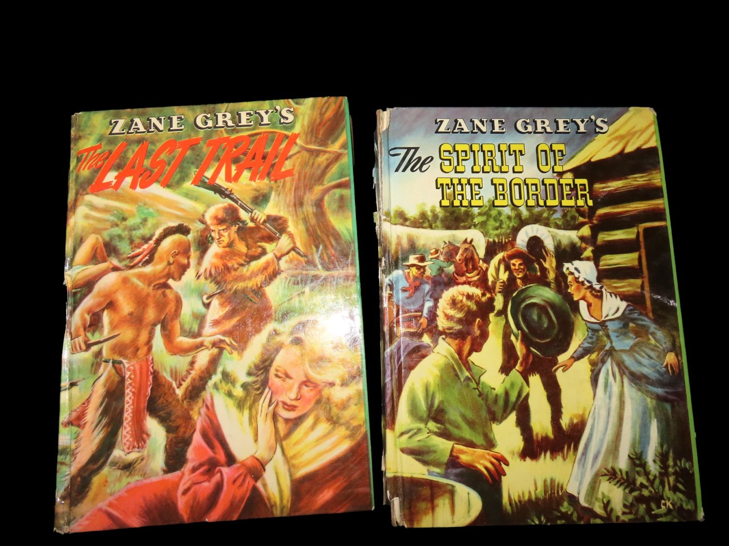 Set of 2 Zane Grey Books from the 1950’s- “The Last Trail”, and “The Spririt of The Border”. Published by Whitman for children, full color binding in good condition. Tinted illustrations throughout.