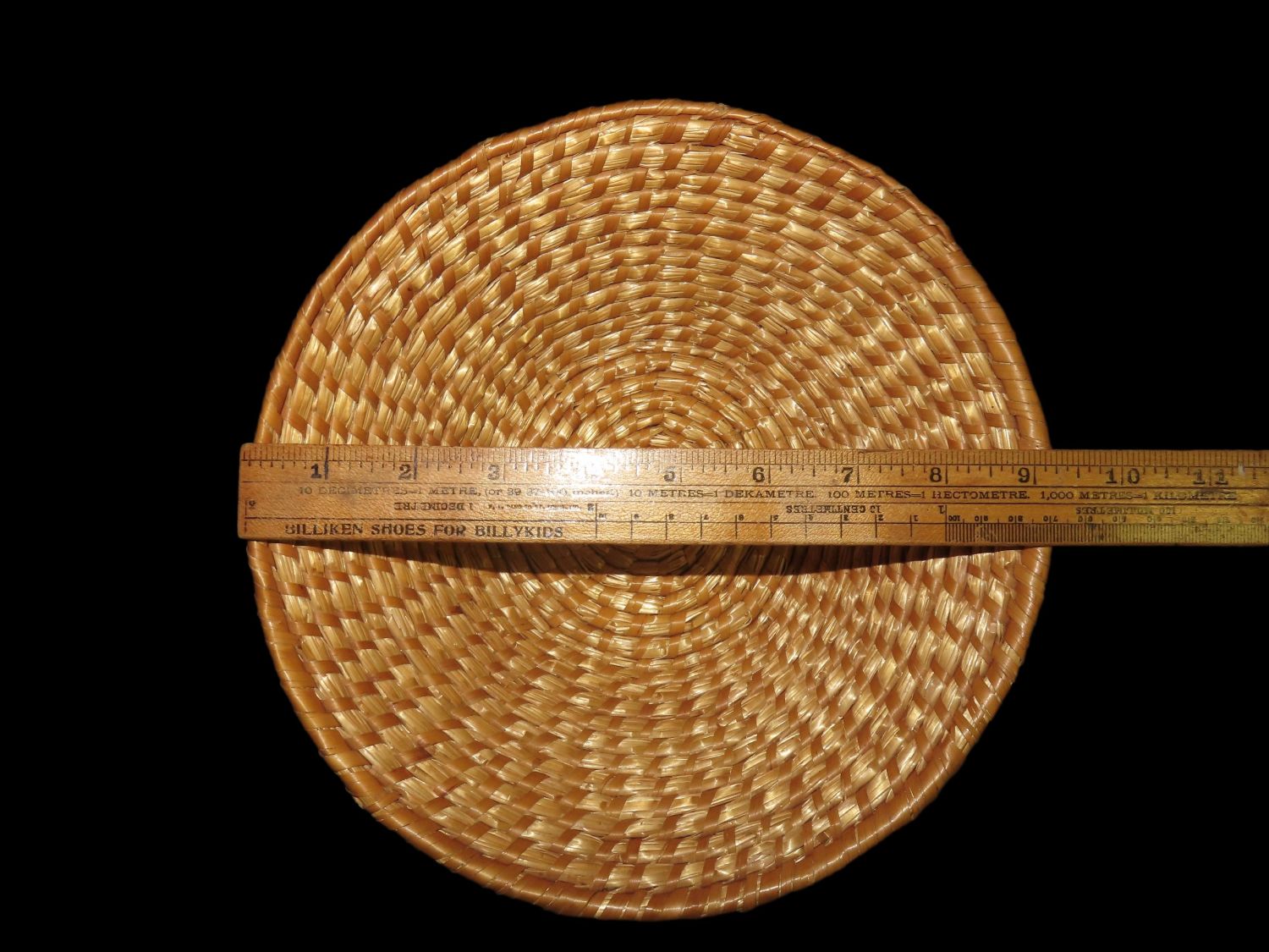 9 1/4″ x 3 1/2″ Woven Straw Basket, footed, Great Condtion