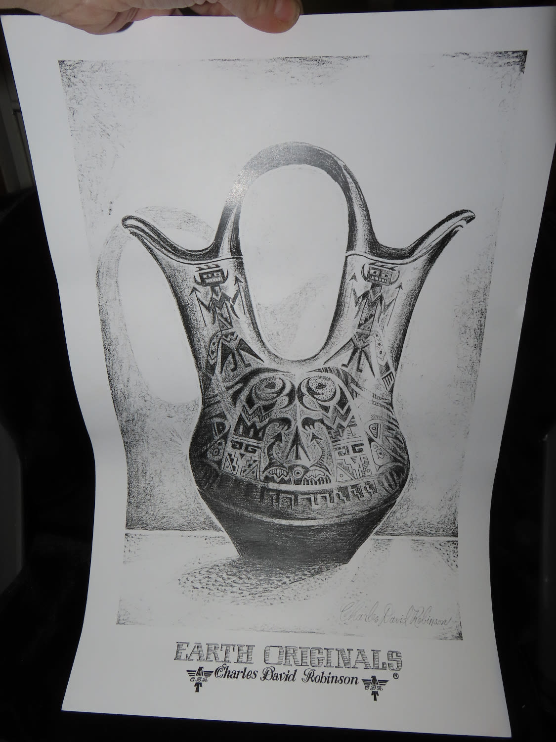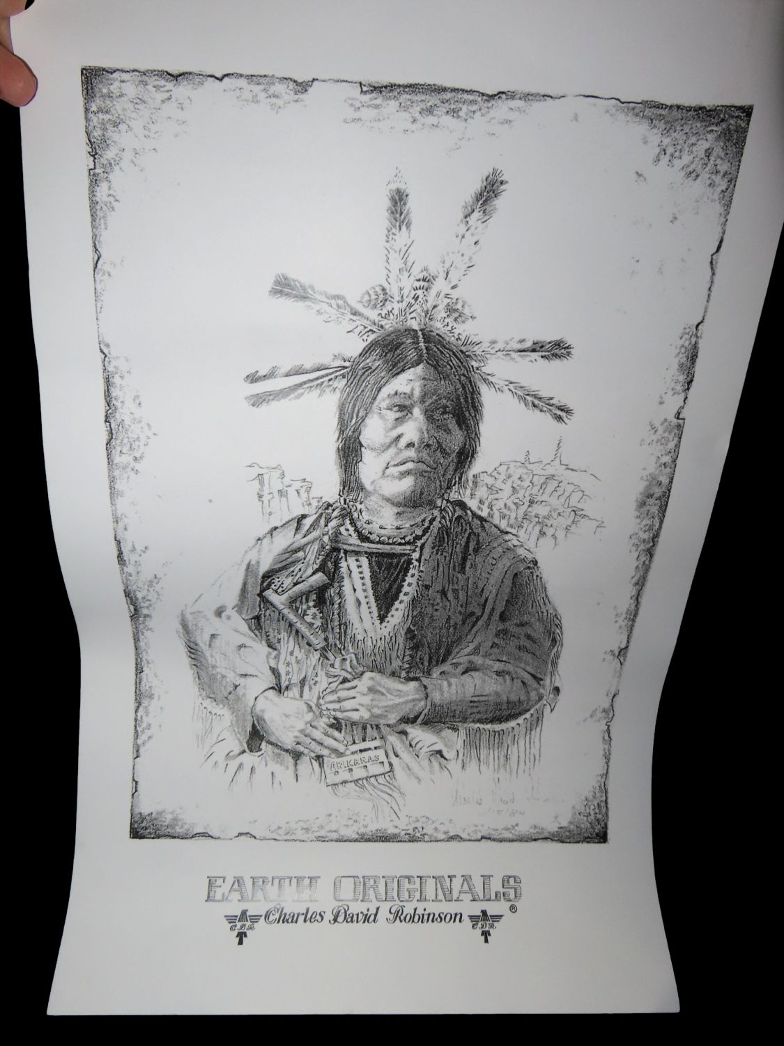 Set of 2- 11″ x 17″ Black and White Lithographs by Charles D Robinson-“Earth Originals”- one depicts a Wedding Vase, the other a Native American holding a pipe.