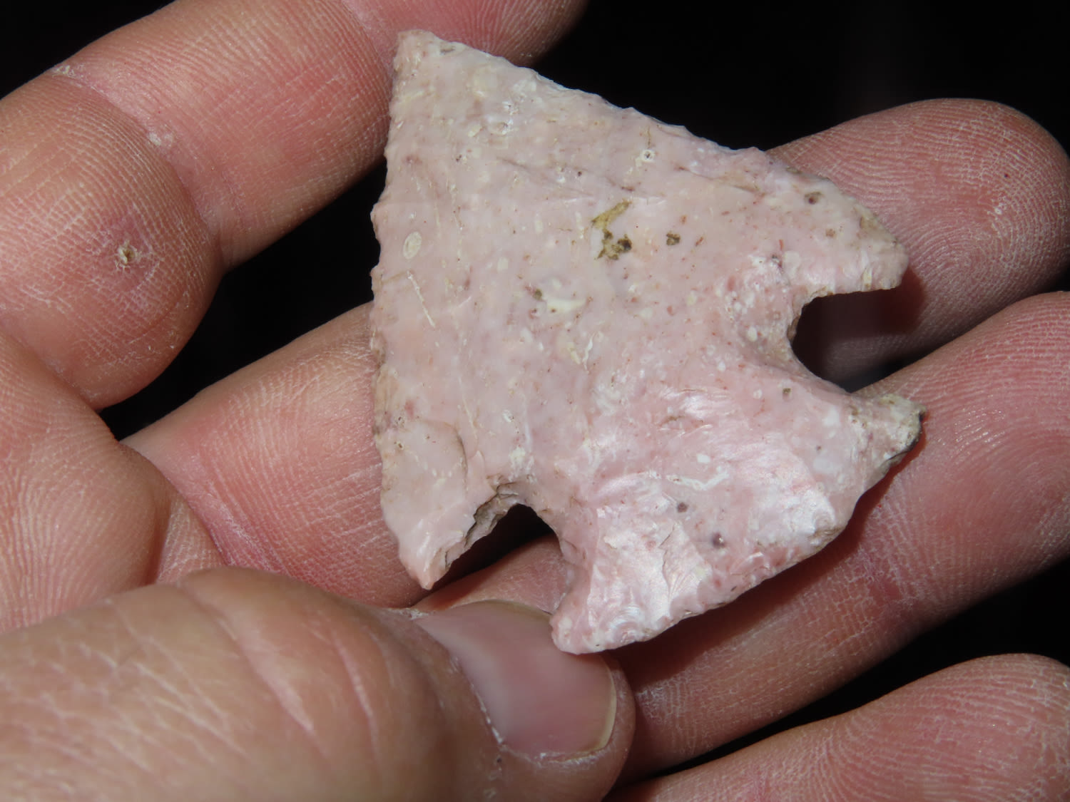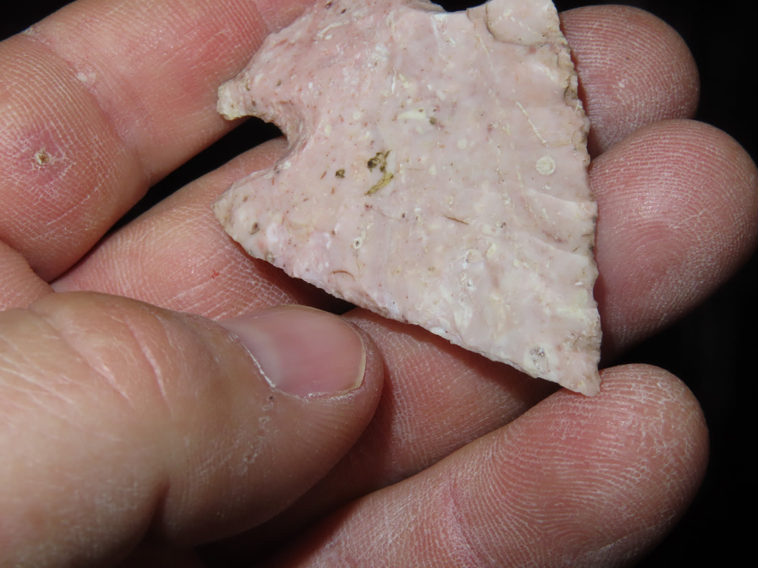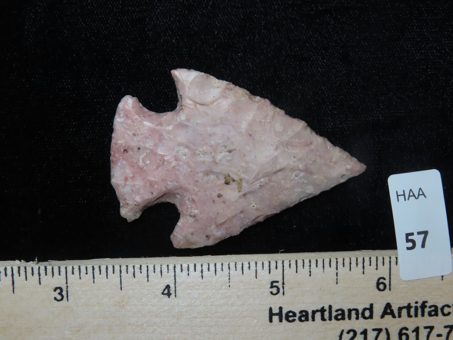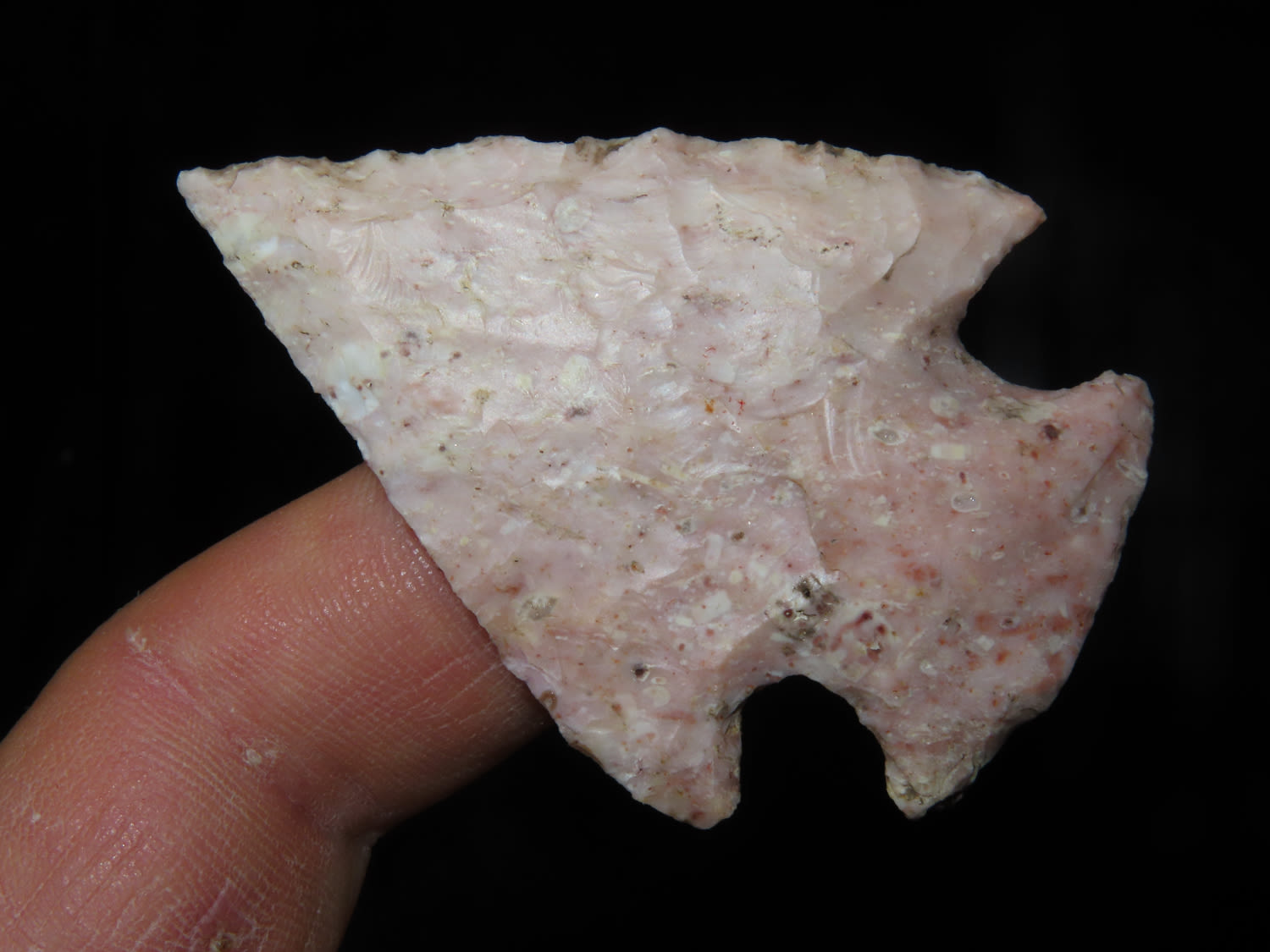 2.3/8" Hopewell Snyders made from colorful fossilized heat treated burlington chert, This Section of Relics / Fossils came from the Byron Knoblock Estate Sale in Quincy Illinois Ex Mary Jo Hunt Collection