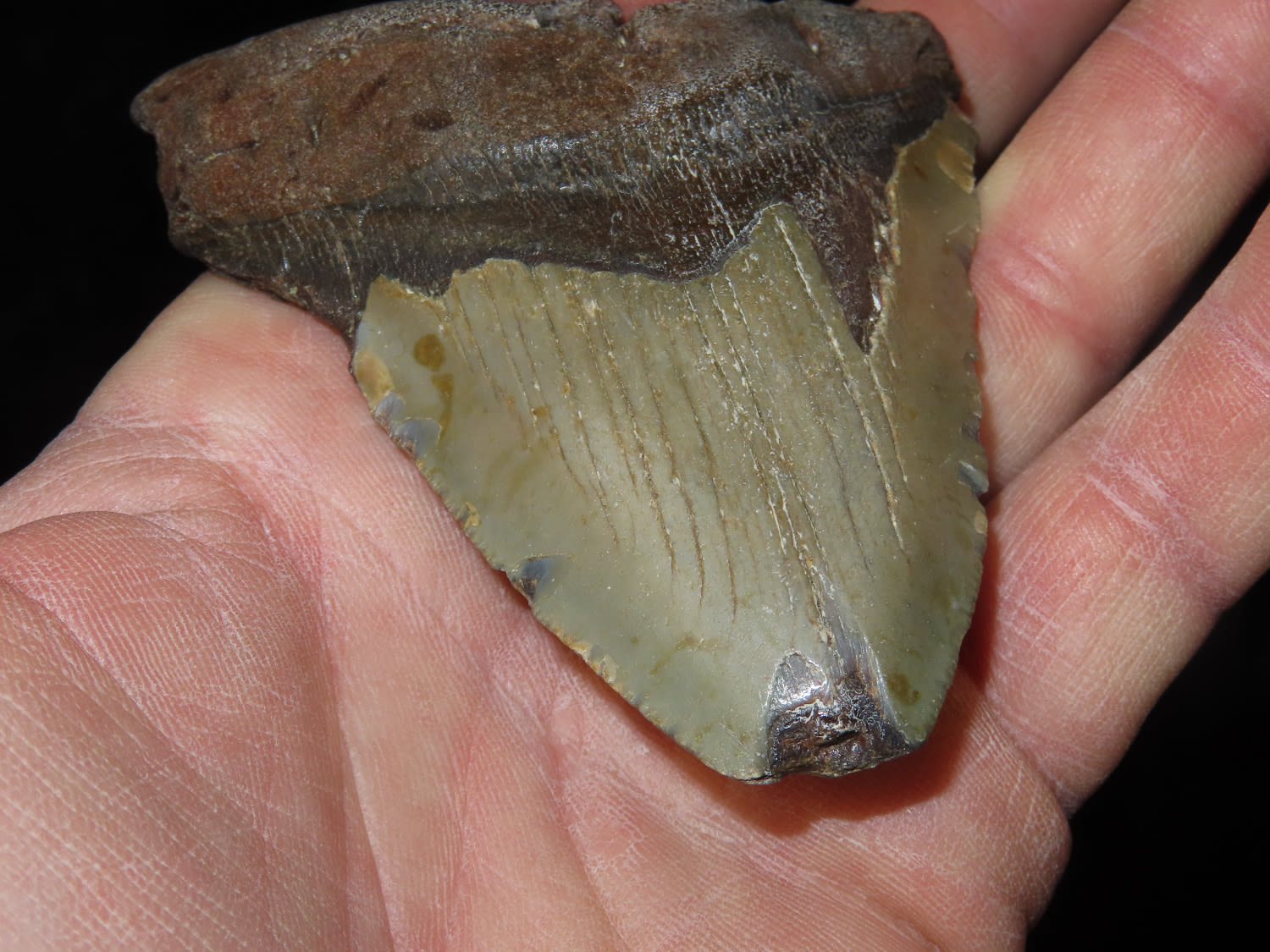 3.7/8″ Megaladon Shart Tooth Fossil , South Carolina