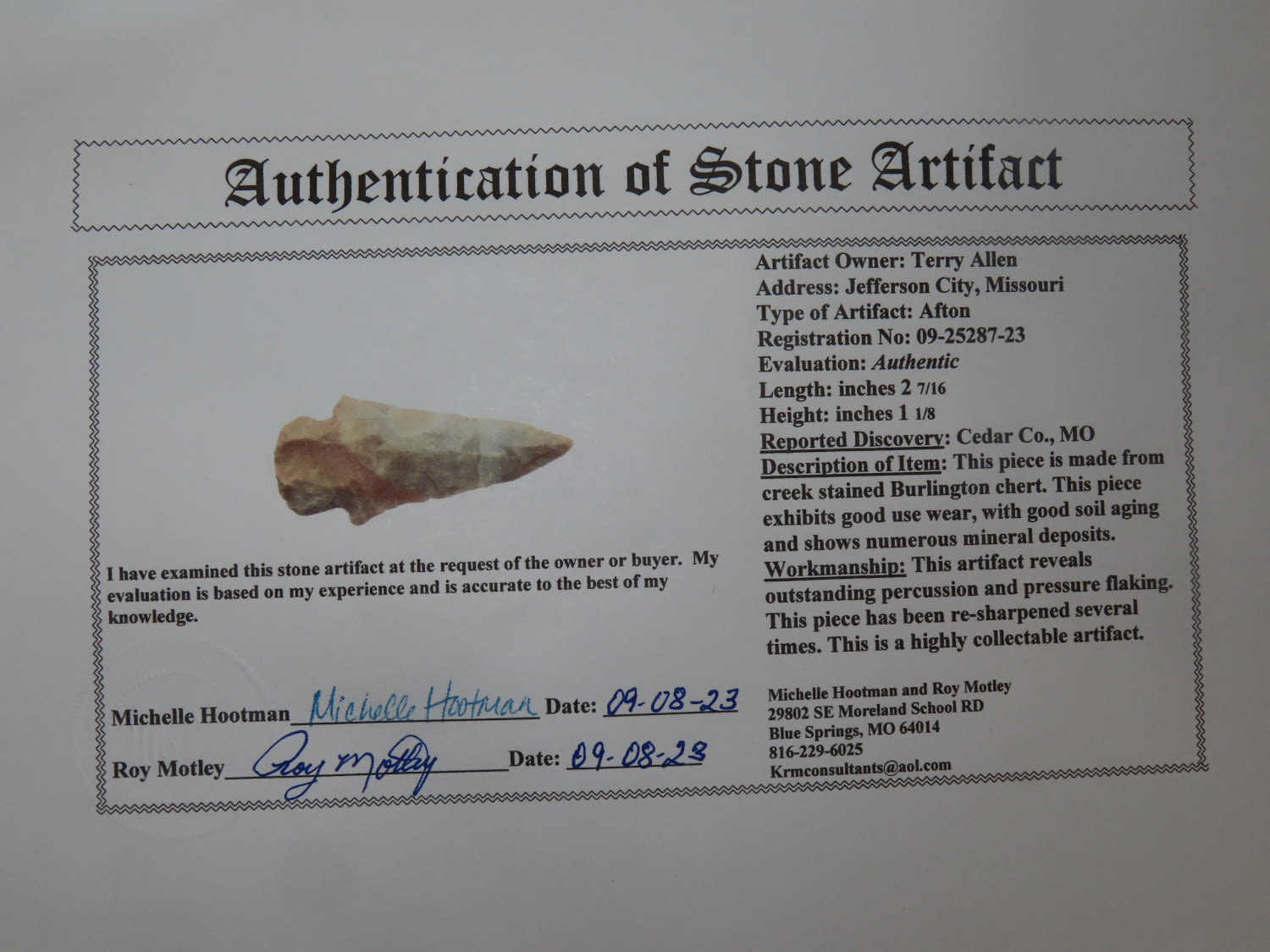 2. 7/16″ Afton. Cedar Co MO. Motley COA