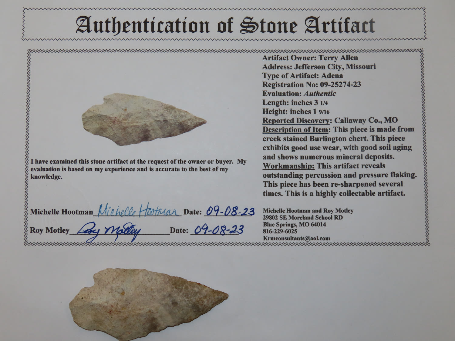 3. 1/4″ Adena. Callaway Co MO. Motley COA