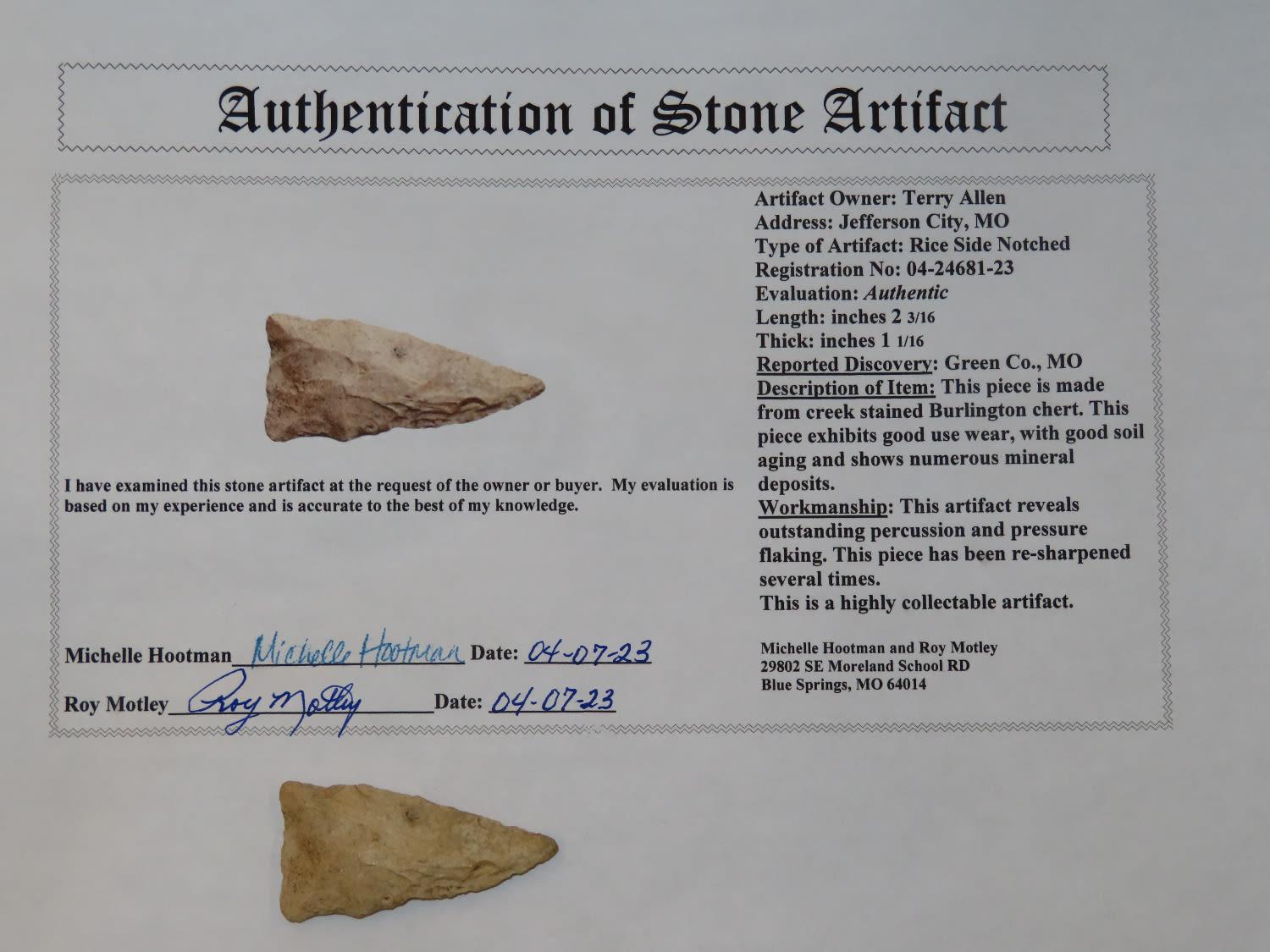 2.3/16″ Rice Side Notch, Greene Co MO Motley COA