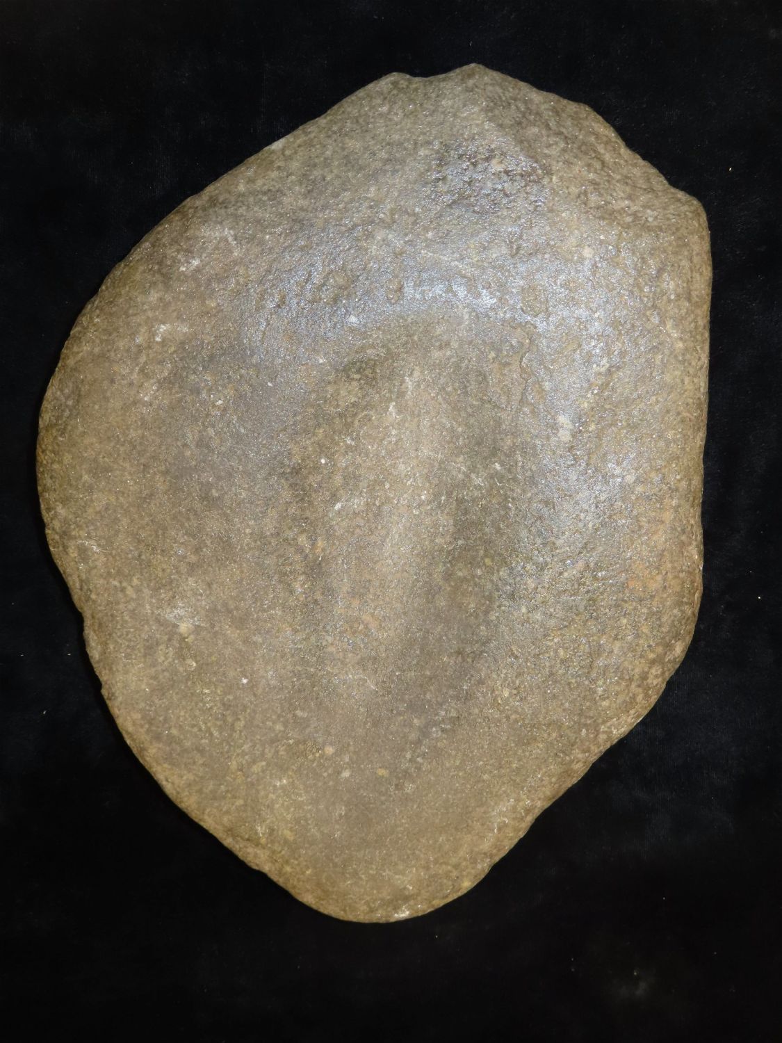Plummet Maufacturing Bowl, Stone, 11.1/4x8.3/4" and nicely dished. Someone has coted it with